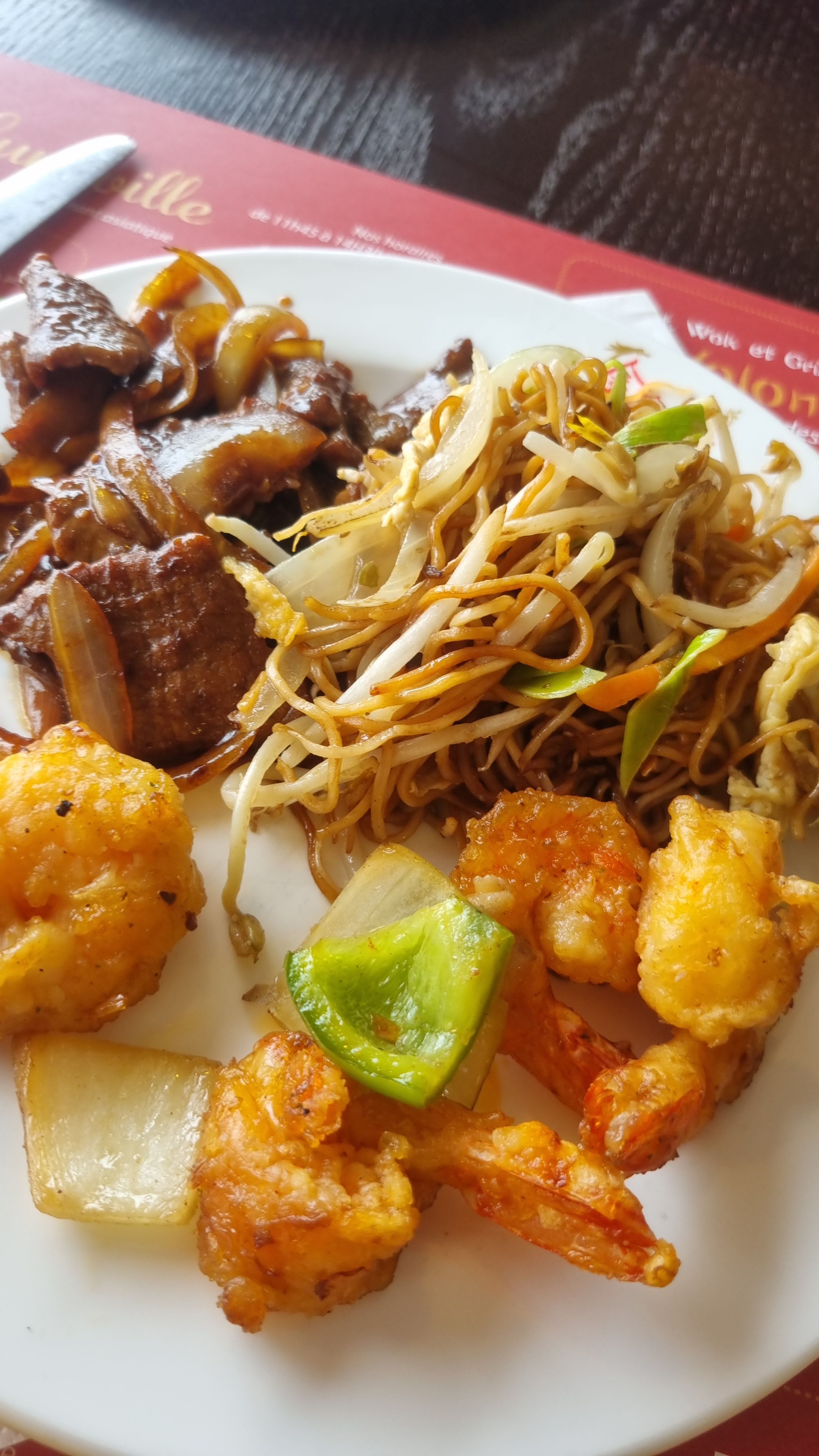 Restaurant à éviter accueil désagréable ! Sol collant.. Quand vous allez au wok le cuisto désagréable et agressif avec nous pour demander les sauces ! De plus il a refusé de me faire grillé des oignons et des champions car jai pas pris de viande ! Donc fait à la rache a l'eau . Aucun choix pour les enfants ! Assiettes salle. Deco annee 80 .. Se sentir observer et suivi quand on veut se servire ! Je le DÉCONSEILLE FORTEMENT !!!