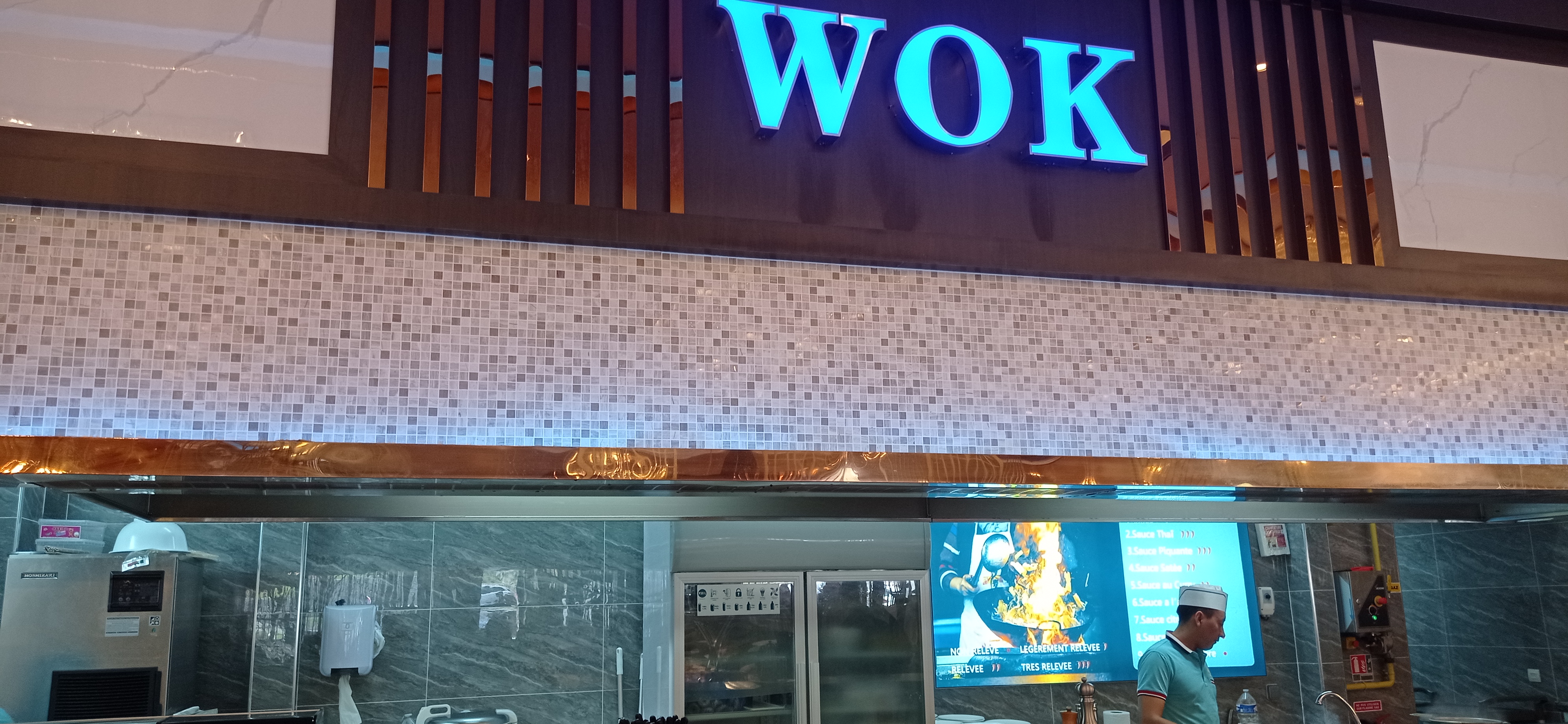 Agréablement surprise, bel endroit, spacieux, qui ne sent pas le graillon, choix important chinois, wok et japonais, produits de bonne qualité, service efficace.