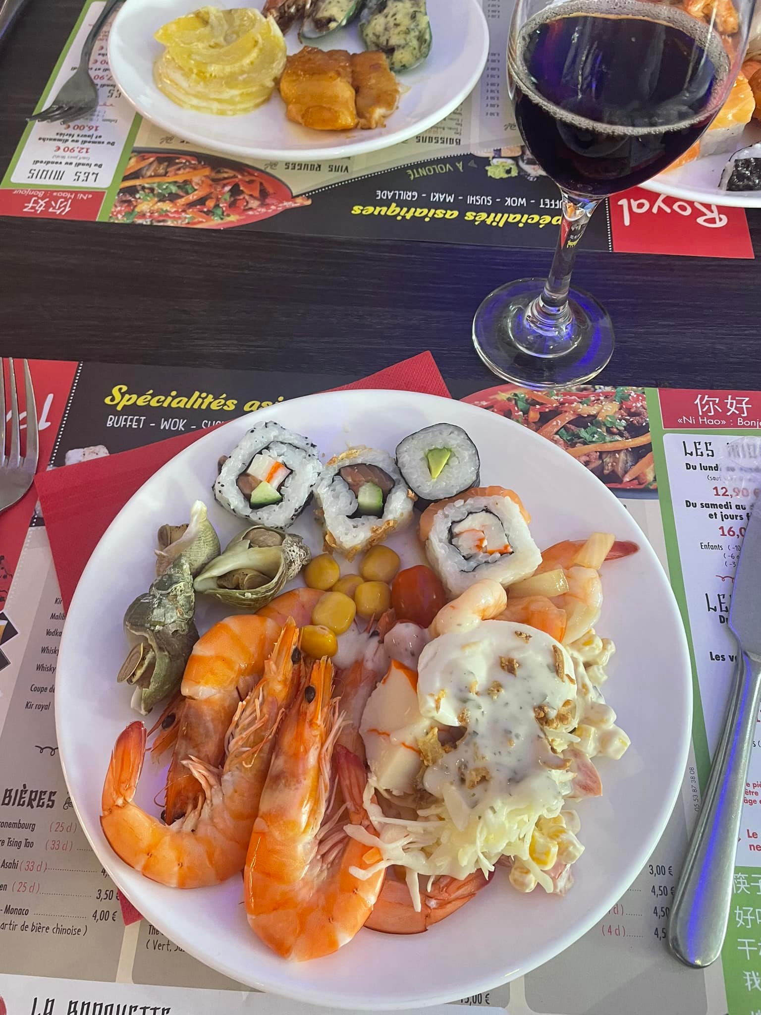 Restaurant très propre. Personnel très accueillant. Nourriture variée : nems, sushis, beignets, crudités, saumon frais, crevettes, bœuf, cuisson de produits frais devant vous, fromage et choix en dessert etc.. Le tout très bien présenté. Le plus, on vous donne un gant pour vous servir , c est une très bonne idée ! Très enchantée de ma première visite en couple. A très bientôt !