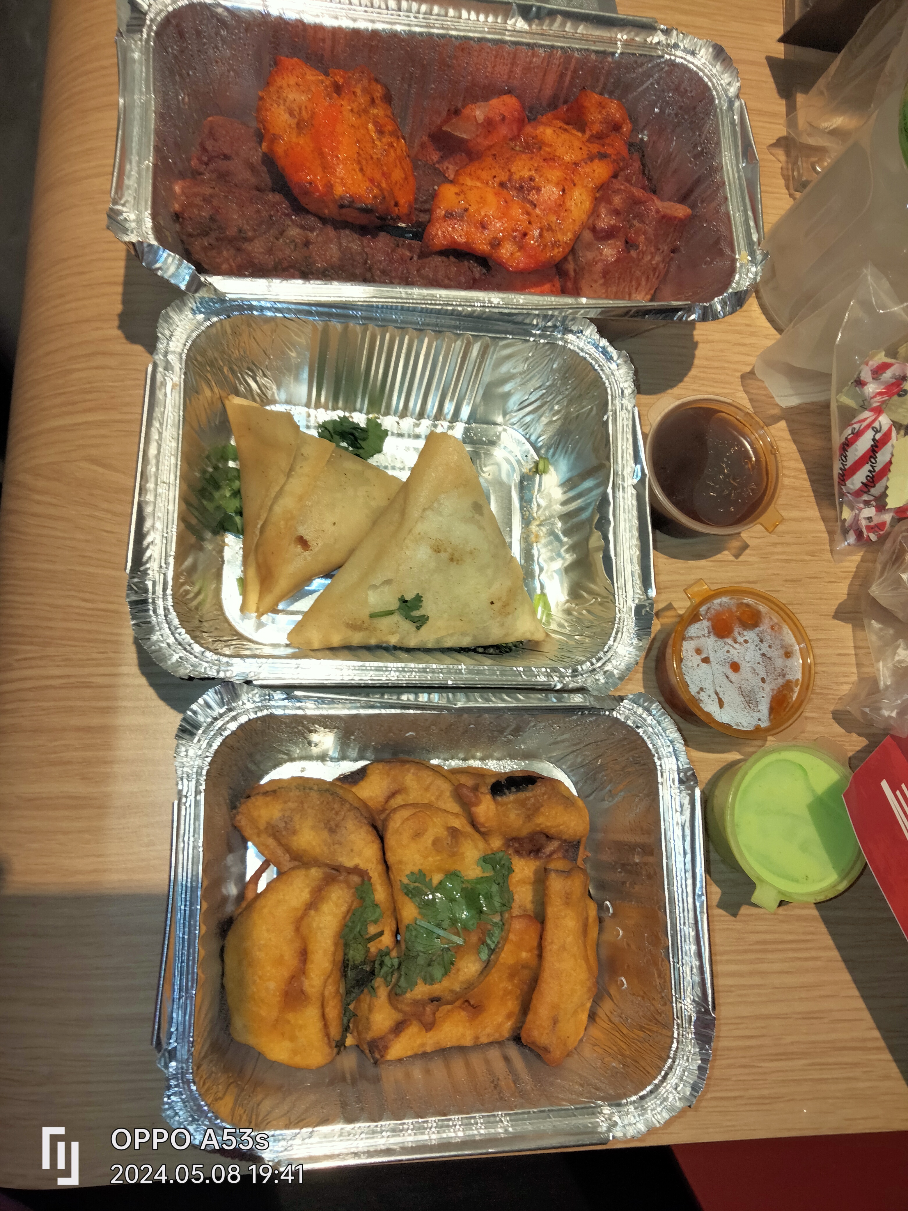 Je suis tellement déçu par ce restaurant. Ils revendiquent un restaurant tandoori indien. Nous avons commandé 1 mix de grillades à 21 € et un pakora d'aubergines à 4,95 €. Ils ont donné une petite boîte de plats à emporter pour le mix grill, composée de 2 petits morceaux de kebab d'agneau, de 2 poulets tandoori et de 2 saumons. Une autre boîte marquée comme mix grill mais contenant 2 samosas aux pois chiches que nous n'avons pas commandés et clairement marquées à tort comme mélange grillé, et le plus décevant est leur soi-disant pakora d'aubergine qui est juste des tranches d'aubergines trempées dans la pâte et frites. Pas haché et ne ressemblait pas aux vrais pakoras. C'est juste des aubergines tranchées et trempées. J'ai travaillé pour des familles indiennes, je fais des pakoras. C'est la première fois que je vois ce type de soi-disant pakora. Ce n'est pas une cuisine indienne authentique. Ils ont facturé 21 € pour 6 pièces de minuscules viandes mélangées grillées. Le personnel était gentil, mais leur nourriture ne l'est pas. Je ne recommande pas.