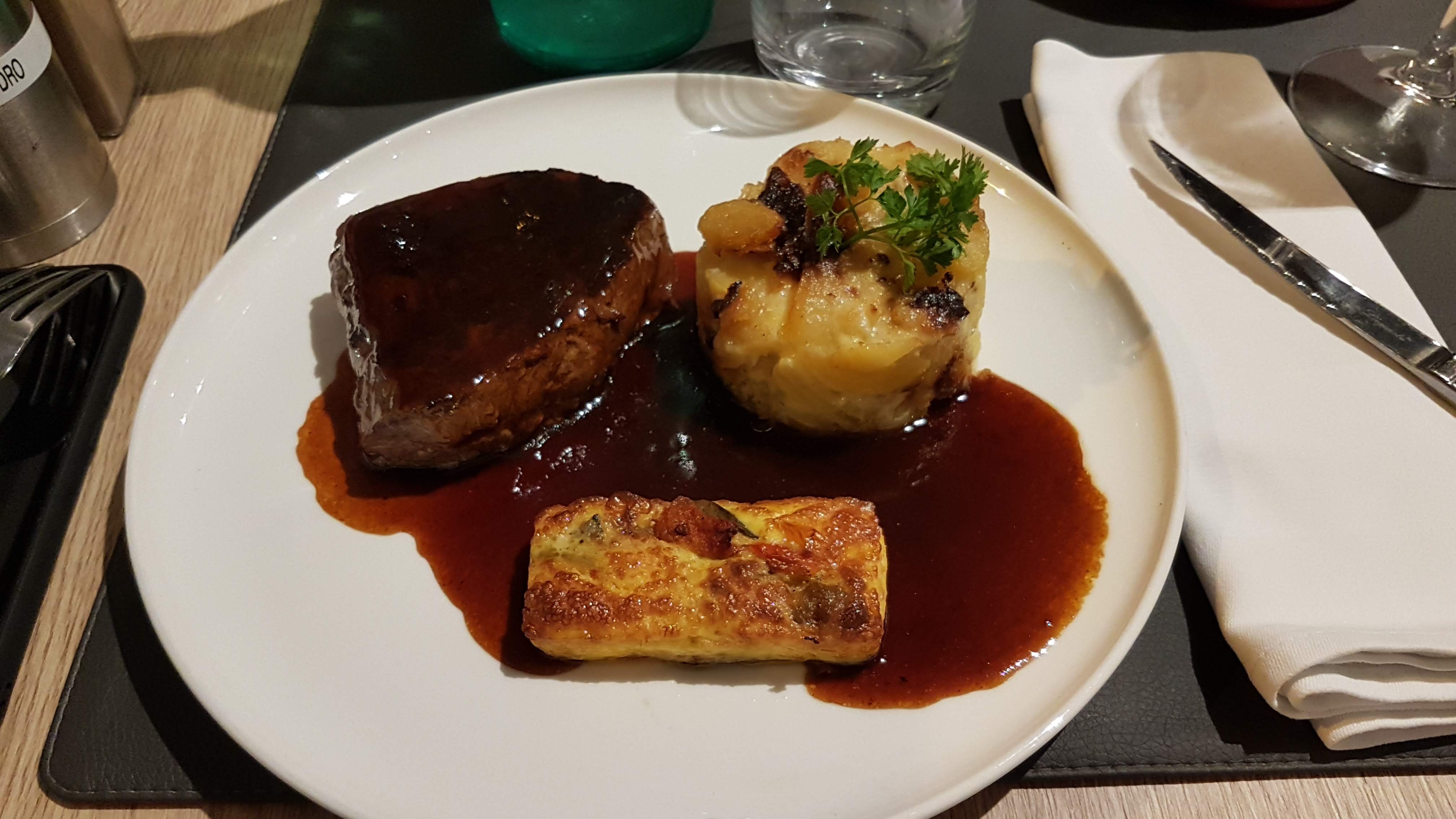 La mise en bouche et les entrées étaient très bons et le plat avec les poissons également. Les frites, servies avec le hamburger étaient excellentes. Par contre, le hamburger était quelconque, la garniture est a améliorer. Nous étions tous les quatre déçus par les desserts, l’assiette gourmande. La pâte de la tarte aux pommes était molle, la crème rien de spécial et la glace n’était pas bonne, on aurait dit une glace du supermarché, industrielle.