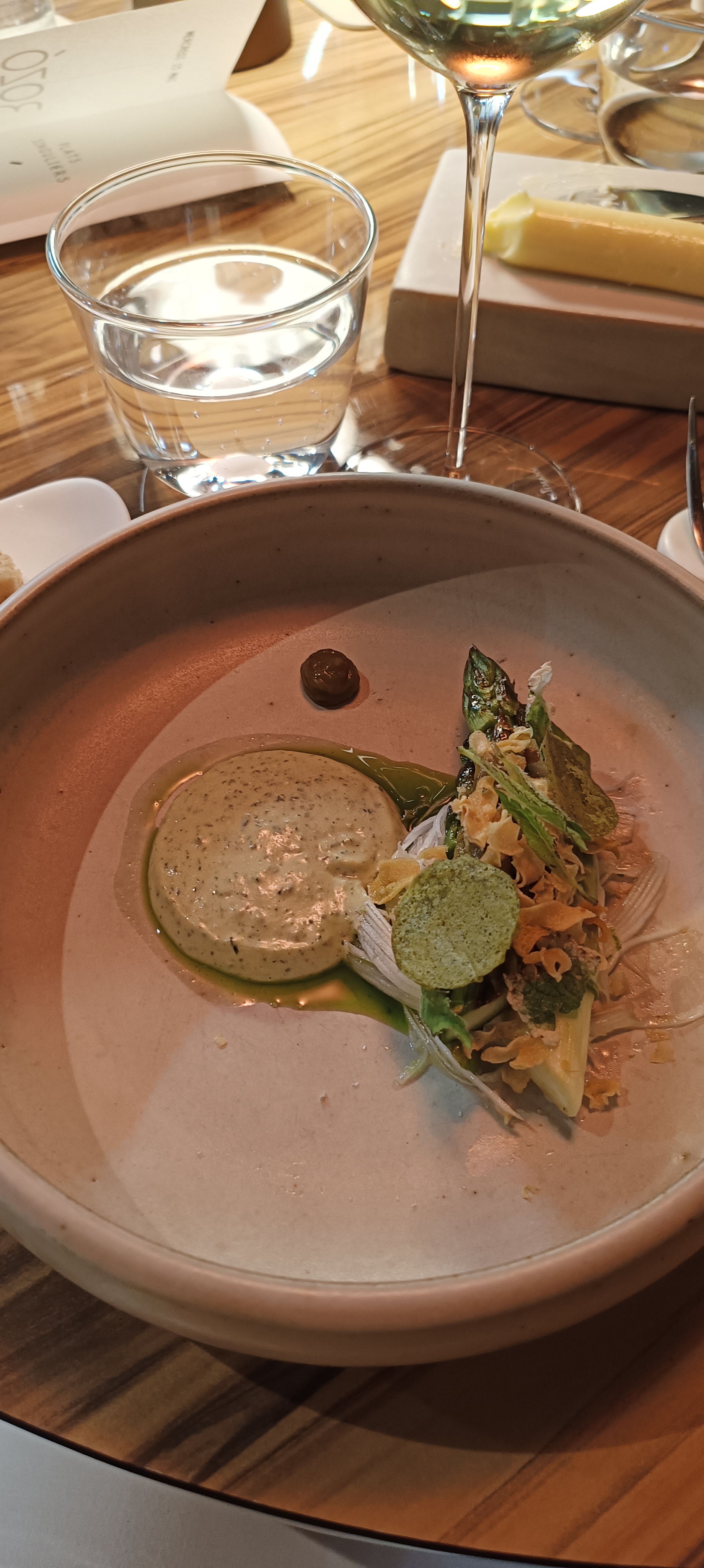Nous avons partagé un repas excellent du début à la fin. Une équipe très agréable et professionnelle. Le cardre simple, minimaliste et une très belle vaisselle. C'est un vrai plaisir gustatif, époustouflant en bouche par des assaisonnements divins. Le sommelier nous a fait déçoivent de très bons vins originaux. Bref,n'hésitez surtout pas une adresse superbe pour les connaisseurs de très bonnes cuisines.