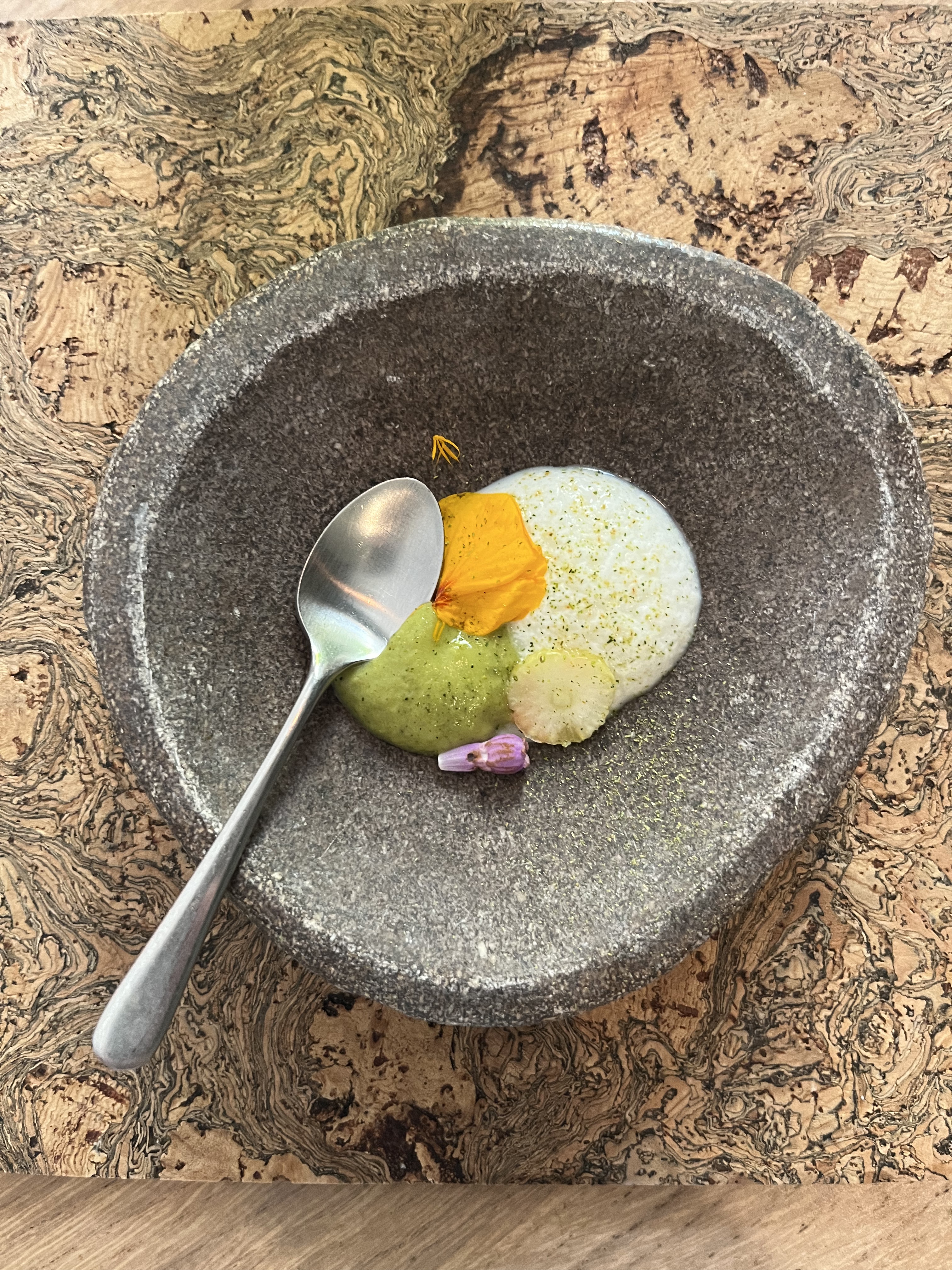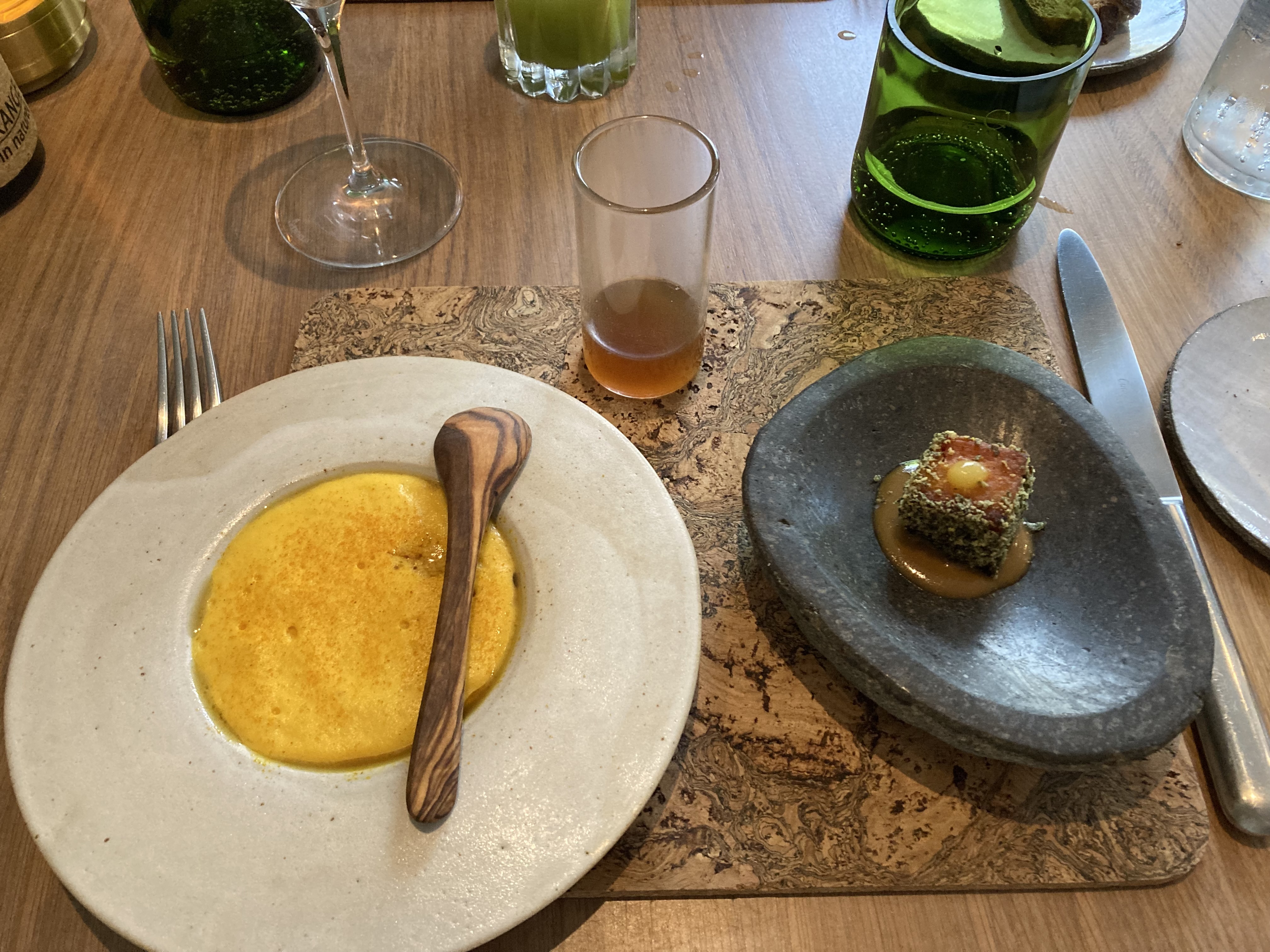 Une expérience culinaire incroyable : mettant en valeur tout ce que ke végétal nous offre, et peu cuit, qui concentre les saveurs, et tout le moelleux des viandes et poissons et est faite aussi pour le plaisir des yeux ! Magnifique dîner. C’était notre 2e expérience et aussi superbe que la 1ere!