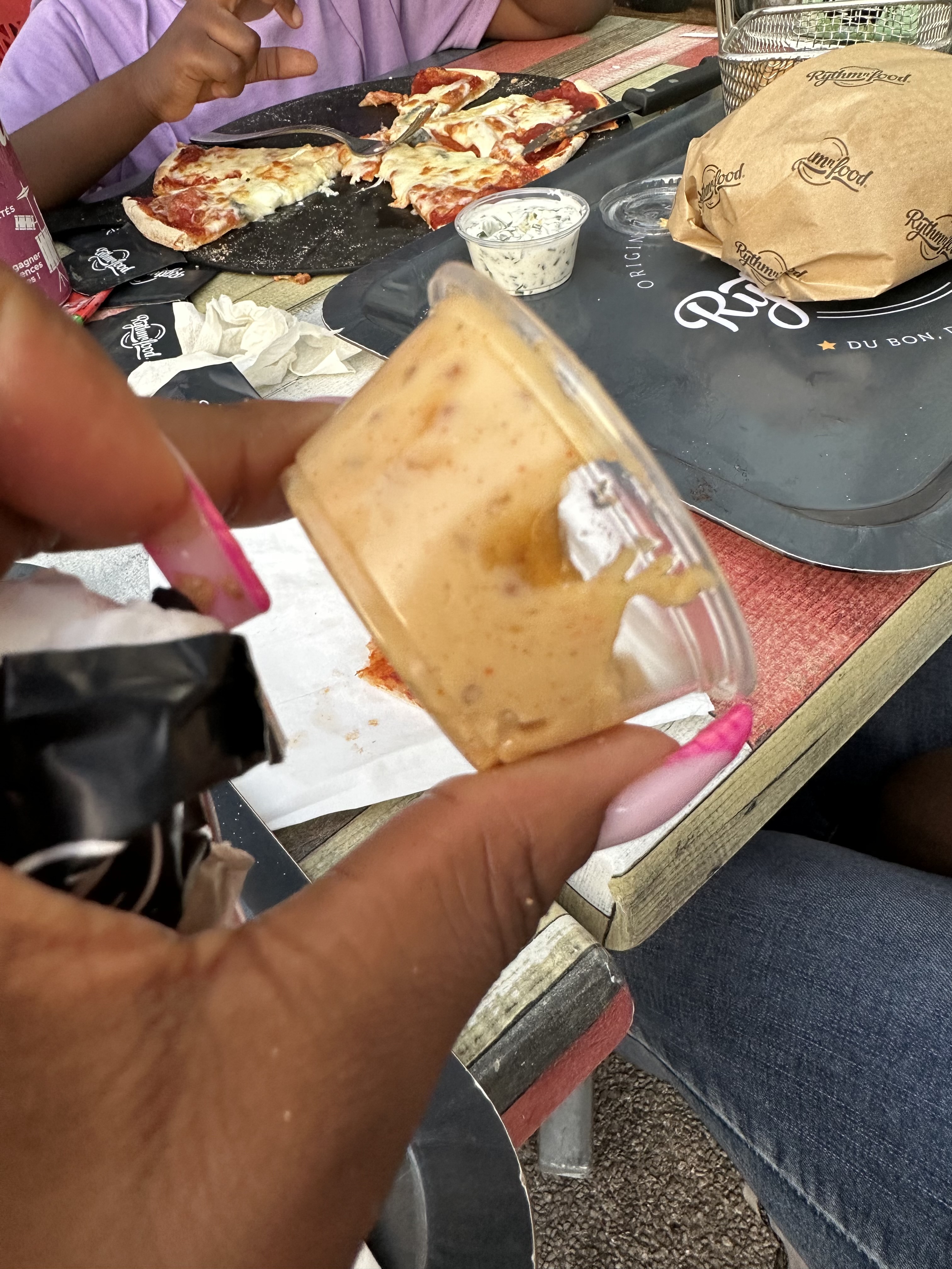 Arrivés à 4 dans ce restaurant, de l’extérieur et en regardant la carte ça donne l’eau à la bouche ; Une fois commandé la déception totale , à part la pizza 4 fromages qui était bonne; à part ça les burgers vraiment pas ouf🥴🥴 Les frites toutes froides , secs et dures pour tout le monde 😪 On en parle des sauces pour accompagner les frites ? 🤢🤢 De la mayonnaise datant de je ne sais pas combien des jours ils ont juste rajouter un peu de la nouvelle pour donner cette impression que ça été fait aujourd’hui Lol🤣🤣 Pareil pour l’autre sauce Du coup on a rien touché. Ne venez pas me dire que c’est faux , car je travaille dans la restauration depuis mes 16 ans et je sais très bien reconnaître les produits, faits le jour même ou pas 😌 68€ pour un menu que ne vaut pas le prix; On été vraiment déçu … Personne pour venir nous demander si c’était bon ou pas , si tout ce passer bien ou pas 😓 Plus jamais on remet les pieds dans ce restaurant, juste beau , le reste c’est à revoir