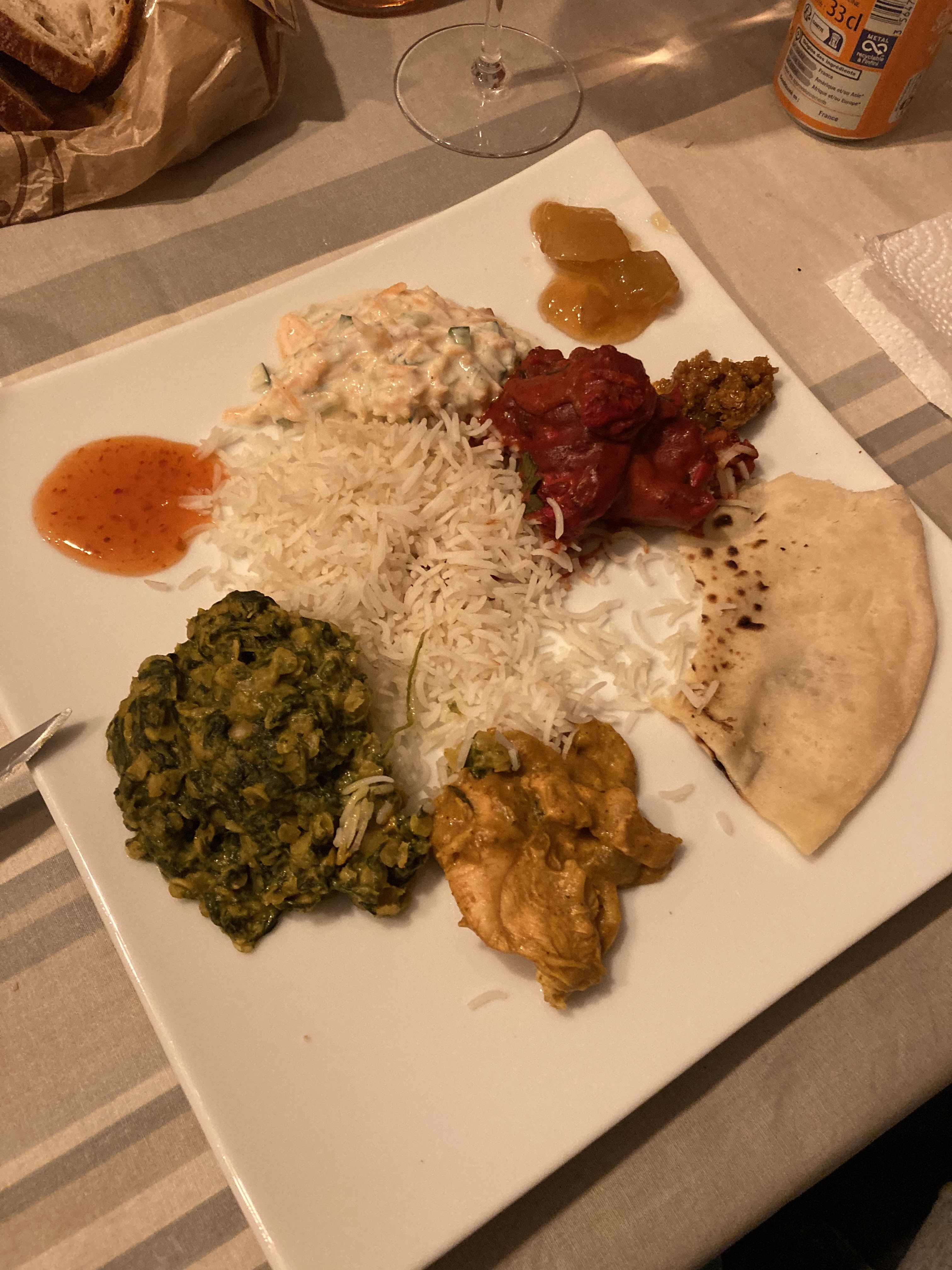 Je mange souvent chez mon ami Indien, (très épicé) je leurs ai demandé de ne pas me faire un repas épicé a l'européenne, ils m'ont cuisiné exactement ce que je mange chez mon ami c'était un pur régal 😍❤️