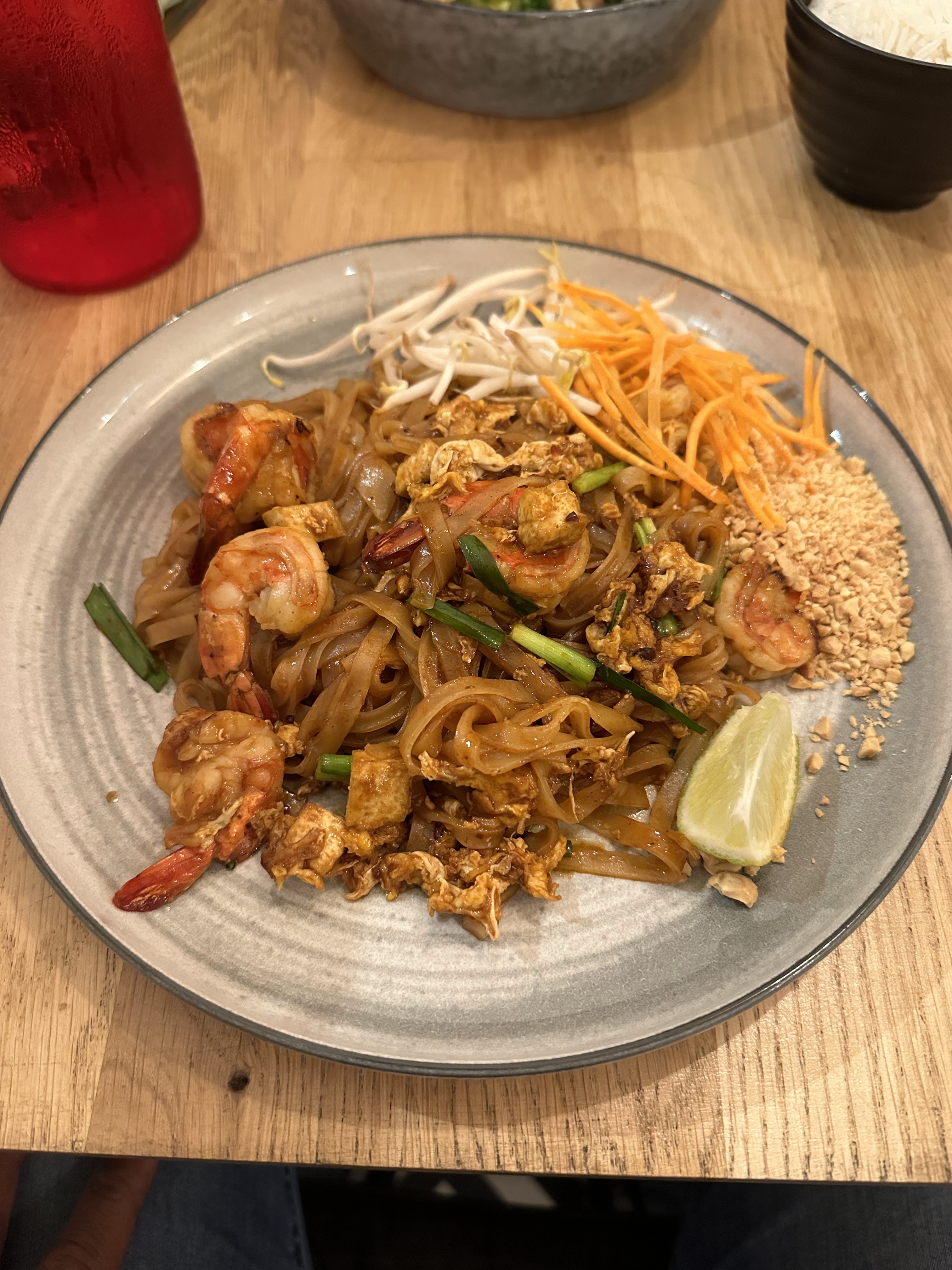 La cuisine est délicieuse ,la déco est très jolie et le service super. J'ai pris un Pad thaï excellent ,une bière chinoise et un dessert . Le prix est juste correct.
