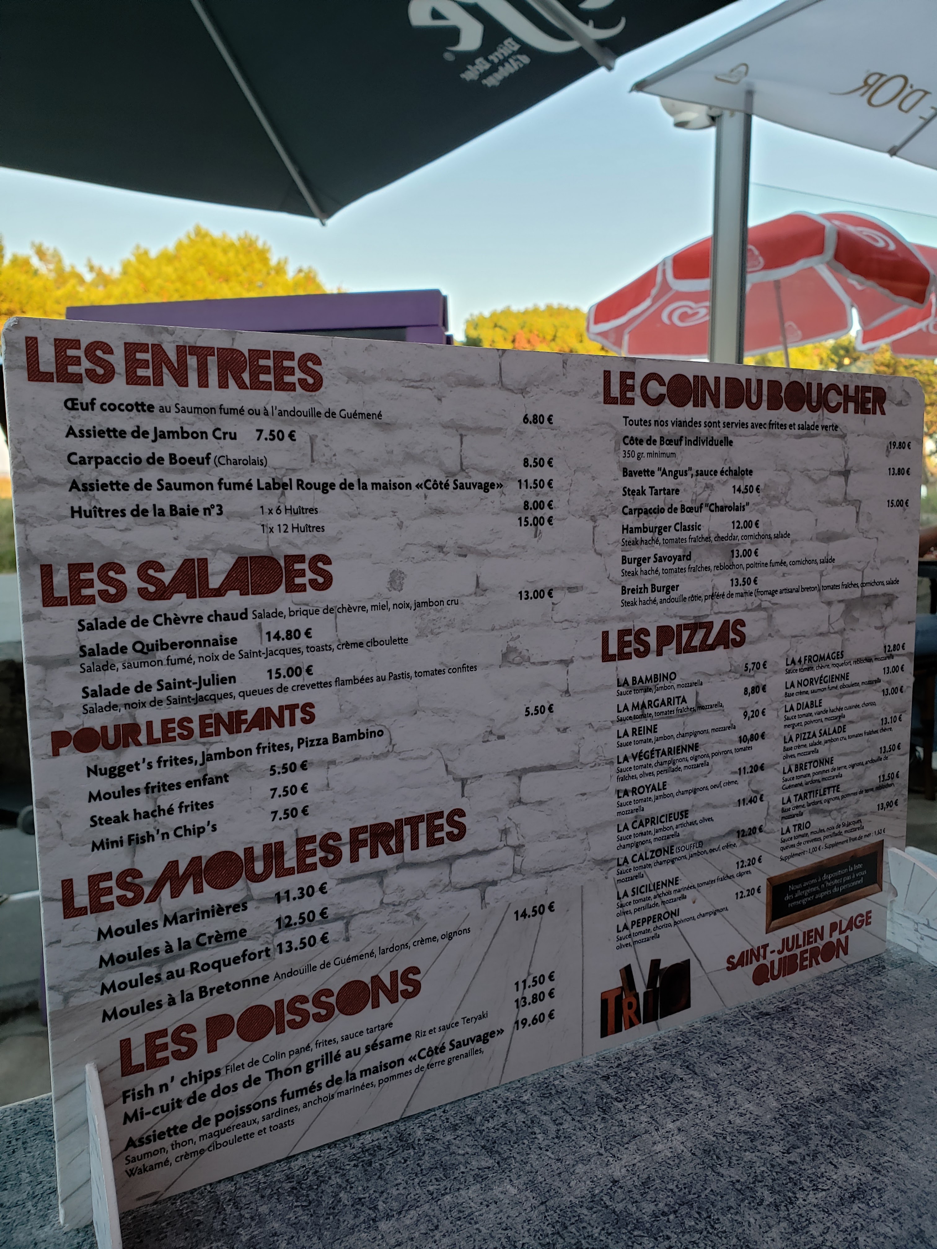 Excellent restaurant. Burger juste trop bon, et pizza exceptionnelle avec un très grand choix. La serveuse m'a proposée de composé ma pizza, s'était un régal.. Il y a très longtemps que je n'avais pas mangé une pizza aussi bonne. Ma petite s'est régalé avec le menu enfant et ses moules-frites. Personnel très accueillant et sympathique Je recommande à fond ce restaurant. Nous y retournerons lors de notre prochaine étape sur Quiberon. Juste bémol, mais temporaire, ne prend pas encore les cartes restaurant.