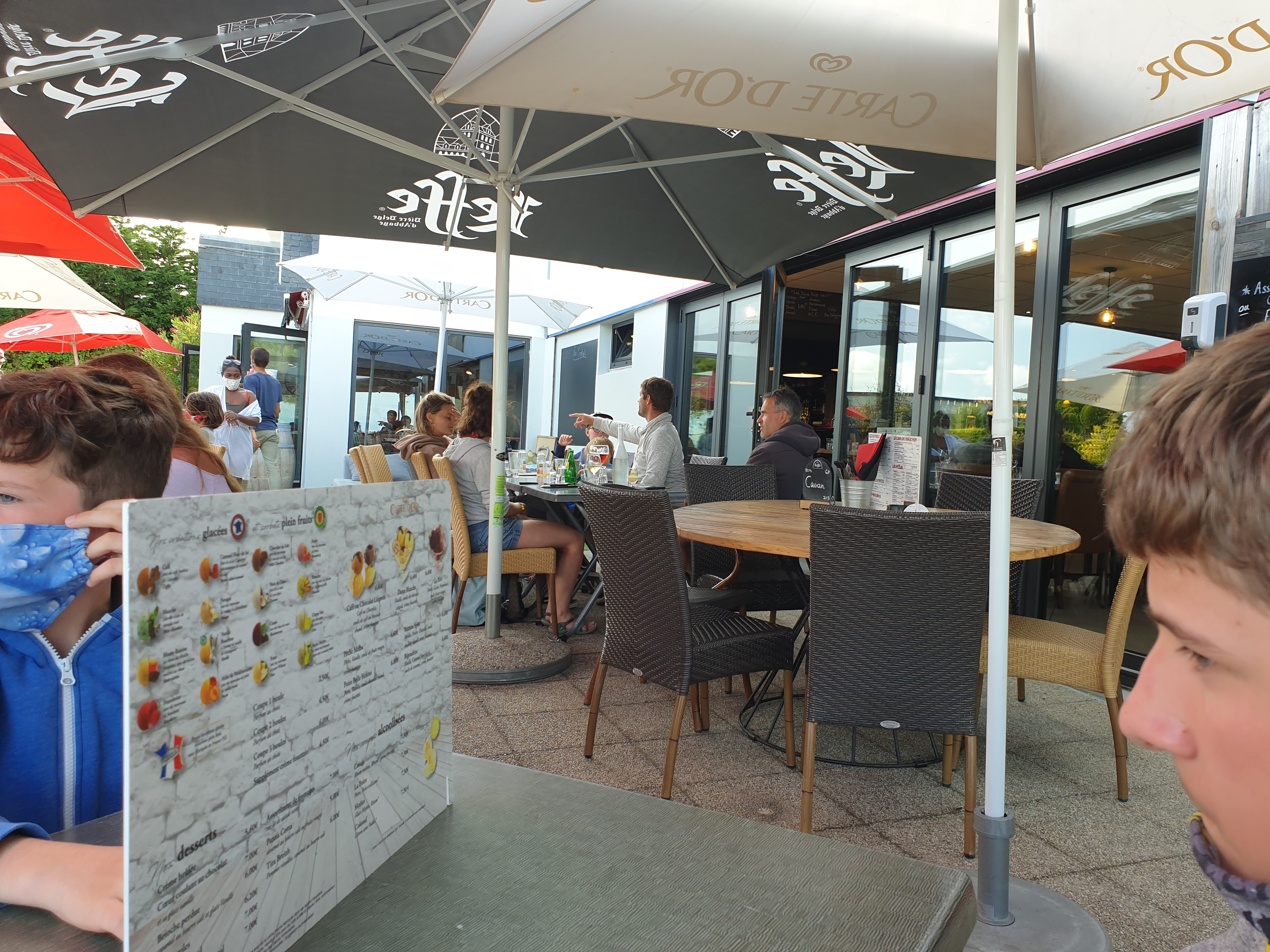 De manière générale, service trop long et désorganisé. Notre enfant n'avait pas de couverts malgré les avoir alertés à plusieurs reprises. Il a mangé avec ces mains. Les bouteilles de vin ne sont pas tenues au frais.... Nous avons hier soir pour juste prendre une glace en terrasse. Nous avons été renvoyé dans un coin et nous avons attendu une demi heure sans que personne ne s'occupe de nous. Nous déconseillons !!