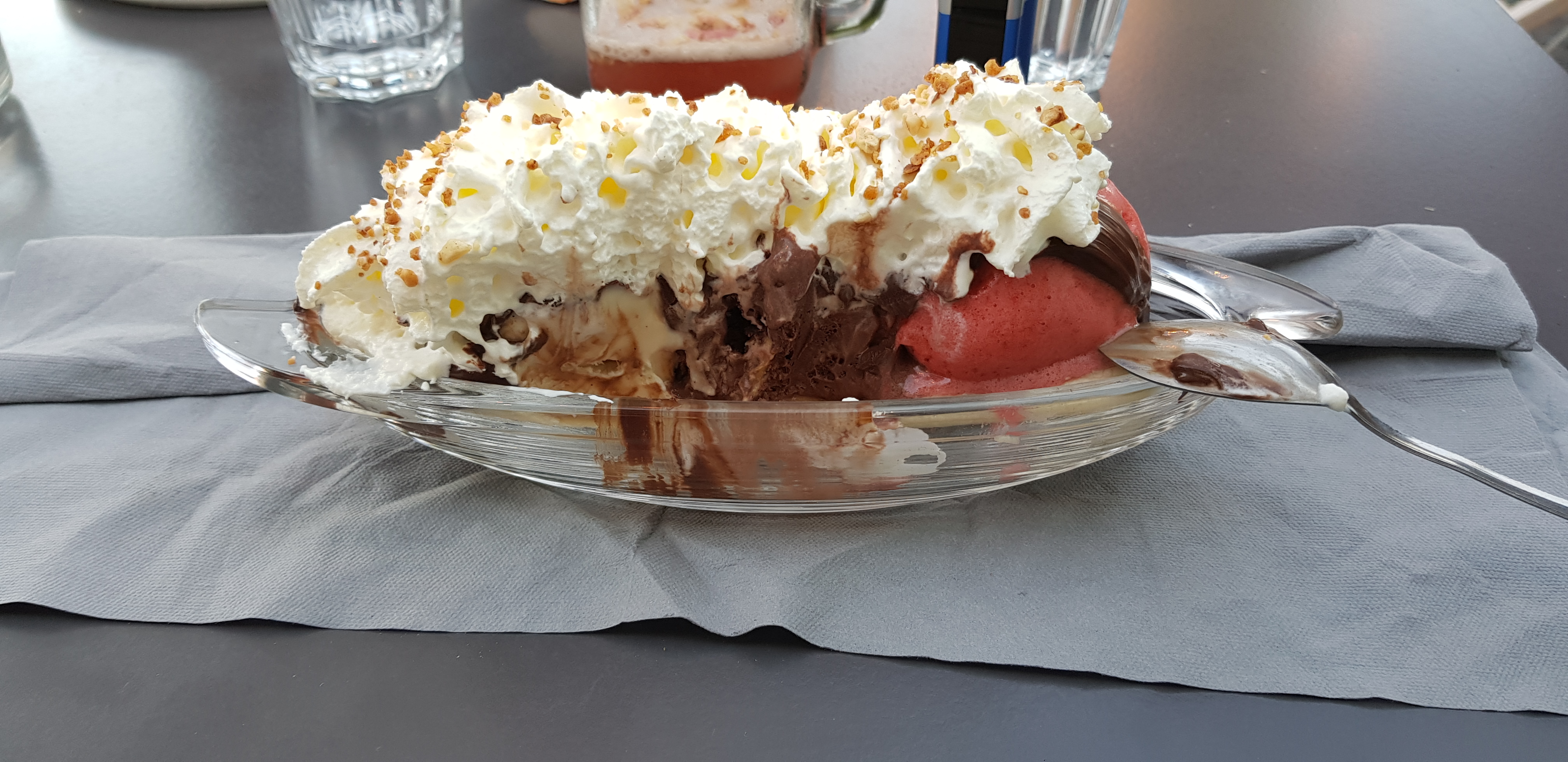 Très bon moment de déjeuner face à la mer. Je trouvais la glace particulierement délicieuse!