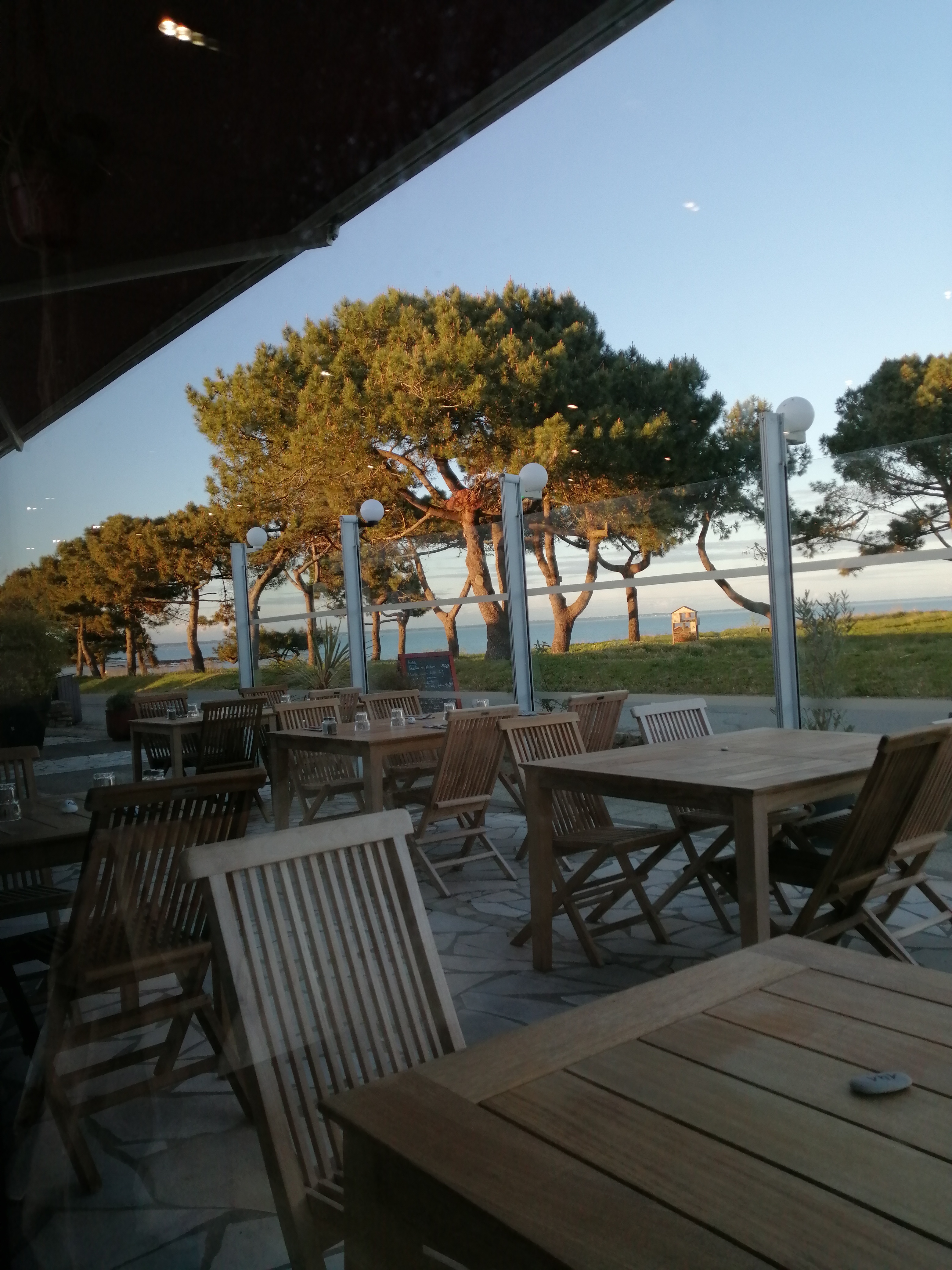 Dîner en terrasse avec vue sur la mer. Possibilité de manger à l intérieur. Plats variés. Parfait pour les goûters Bonne ambiance. Animations avec concert en terrasse fin de semaine. Intérieur et terrassement complètement refaits. A découvrir.