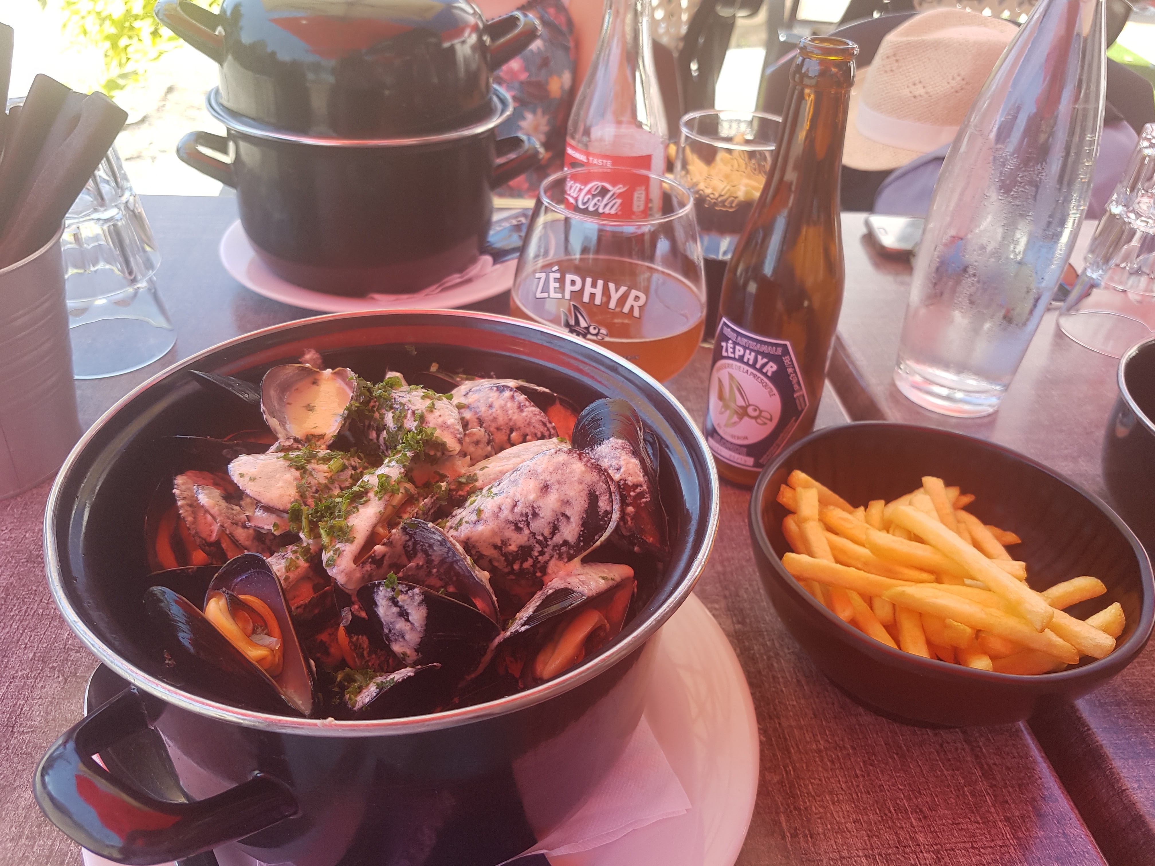 Restaurant tres fréquenté, maigres tout à 13h30, la serveuse à bien voulu nous prendre nous avons pris moules frites, le serveur était au taquet bravo pour le service avec le sourire malgré la cohue, et là c'était bien moules avec des frites sans supplément pour les frites, à faire attention de bien lire la carte