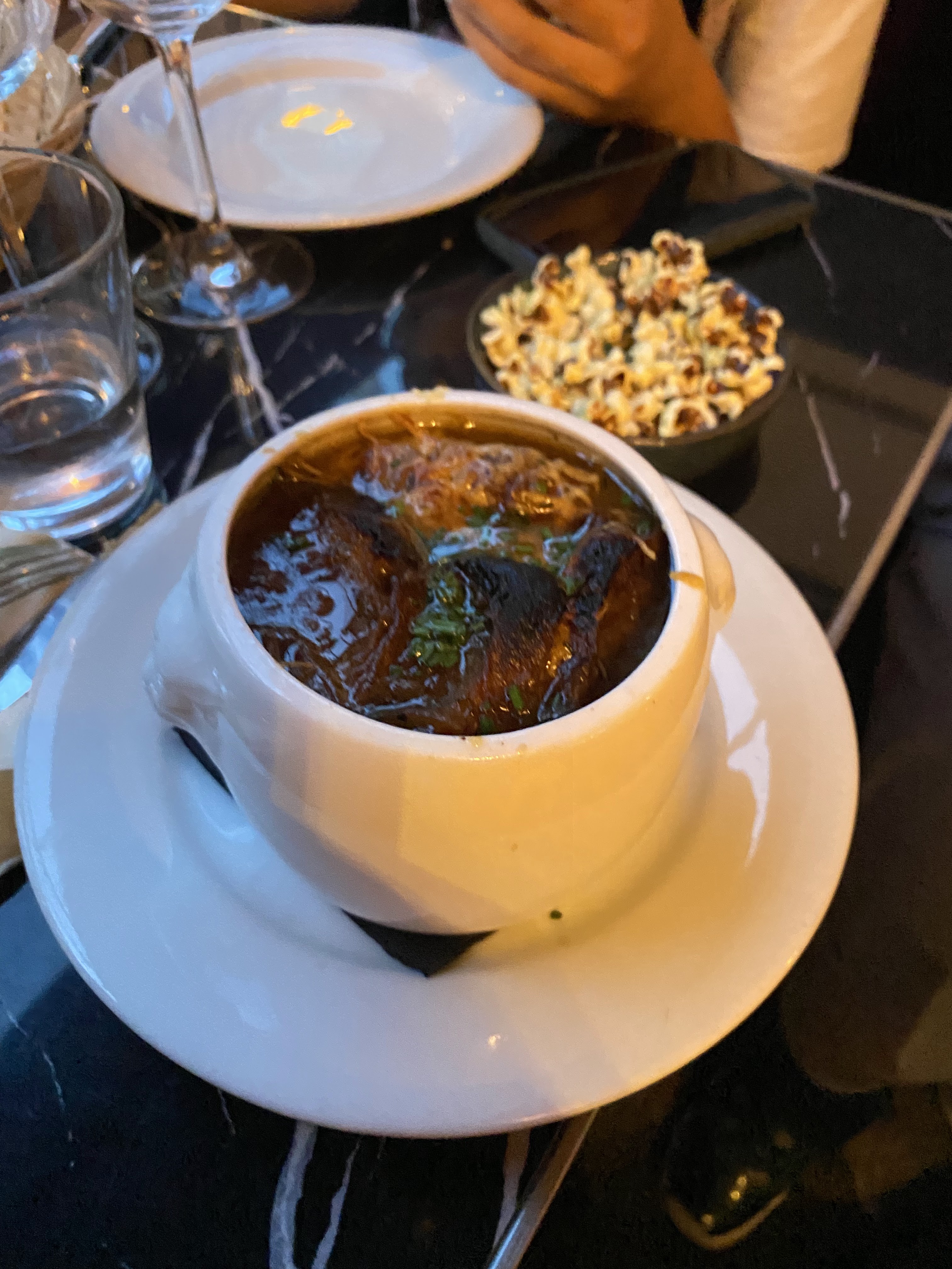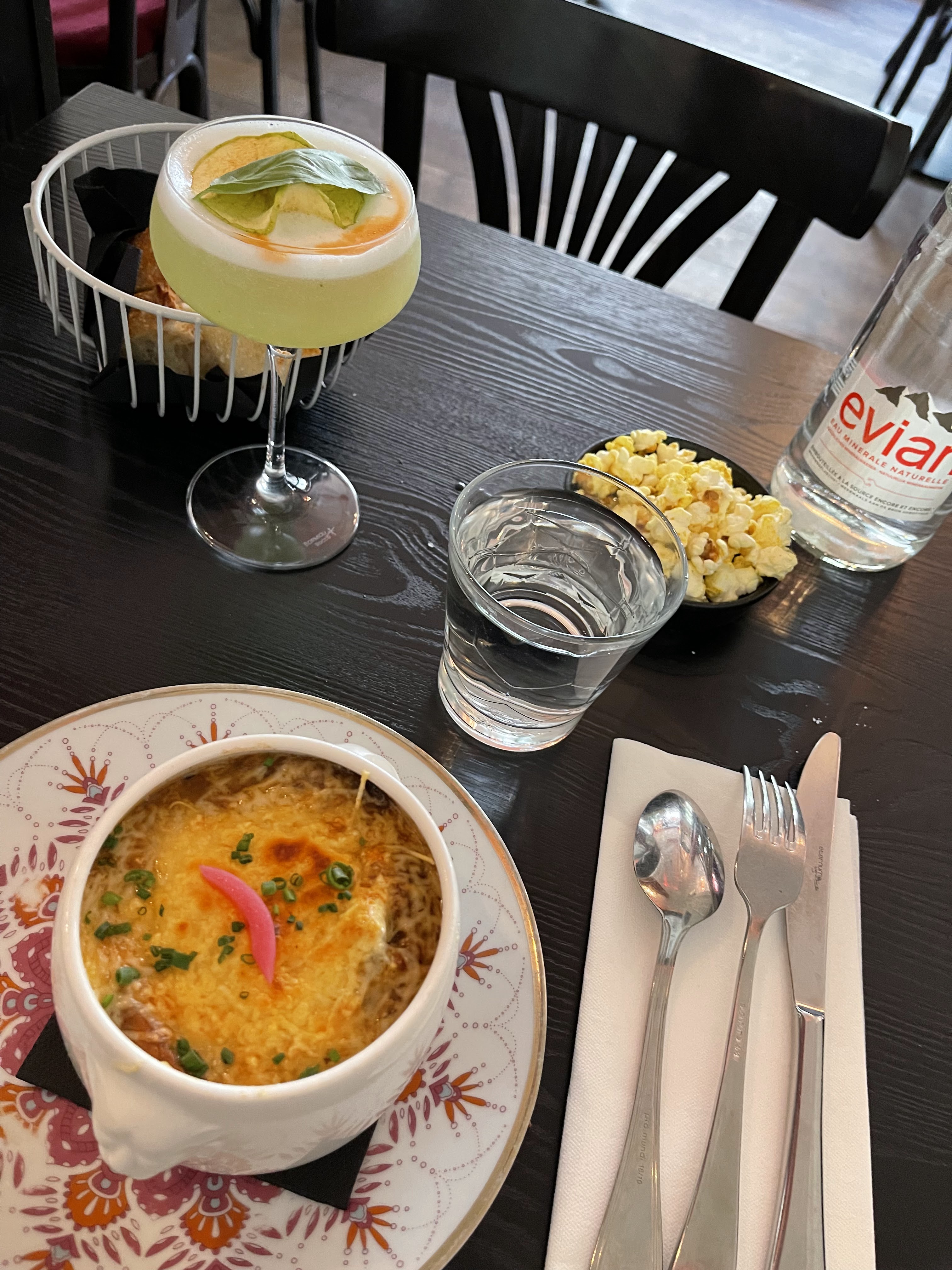 La nourriture était excellente et les prix étaient intéressants. La soupe à l'oignon française était délicieuse avec une baguette croustillante et une quantité parfaite de fromage. Parfait