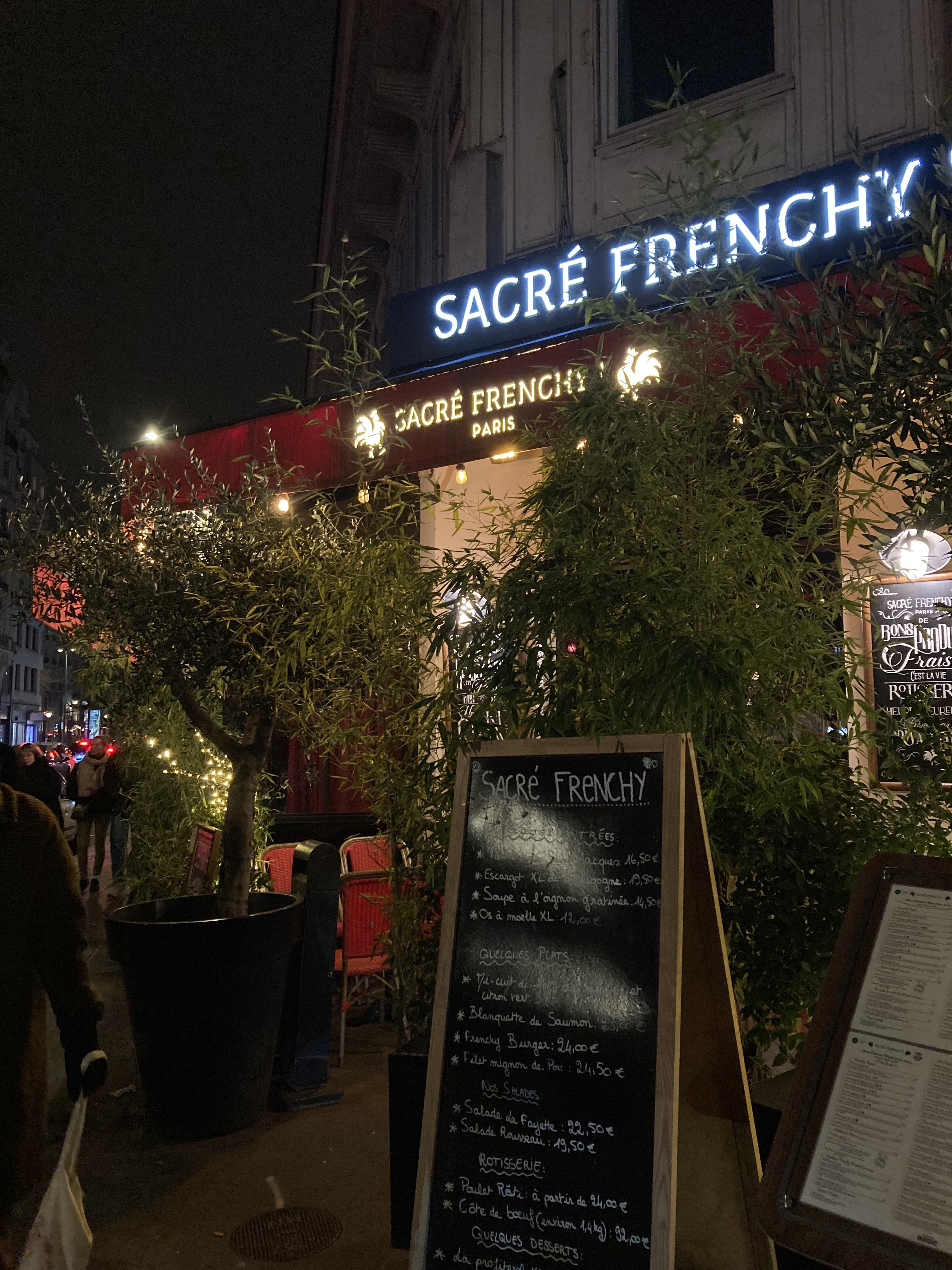 Chez Sacré Frenchy on mange bien mais surtout on est vraiment bien reçu et c’est assez rare à Paris pour être précisé ! Donc un grand merci à notre serveur Pablo pour son sourire, son aimabilité et sa disponibilité ! Nous étions avec des enfants en bas âge, jamais évident au restaurant et grâce à Pablo toute la famille a pu bien profiter de son déjeuner. On reviendra avec plaisir !