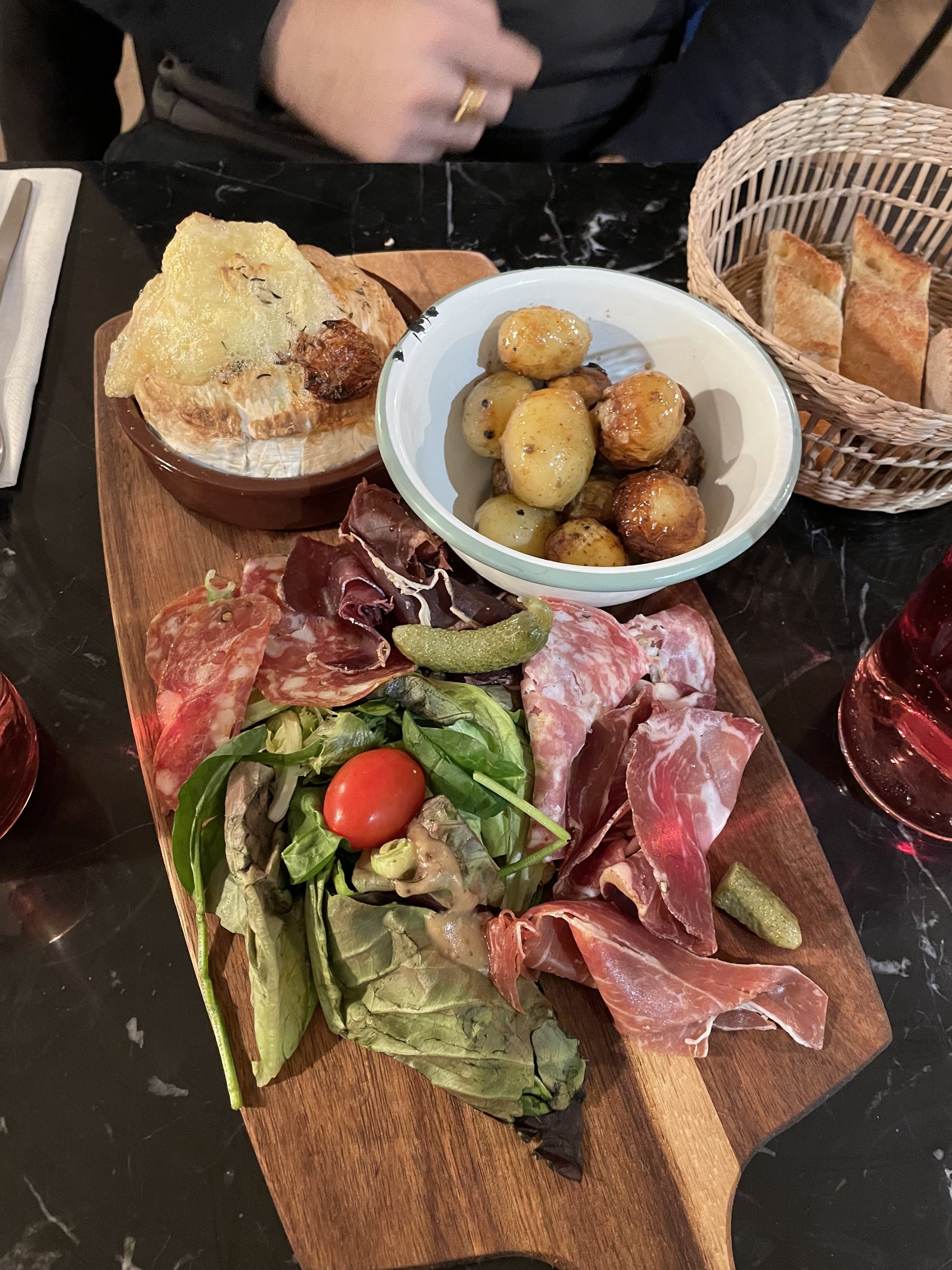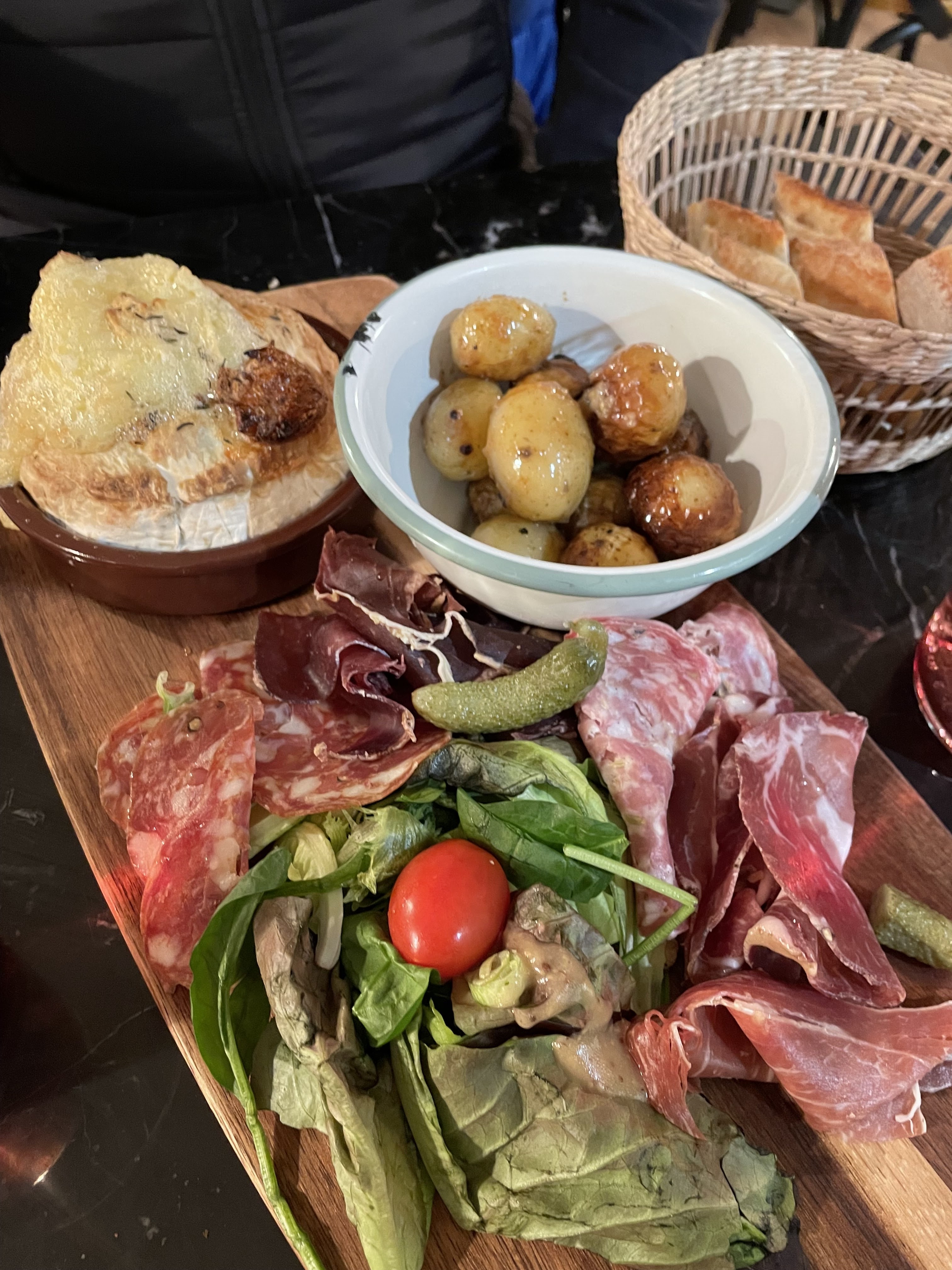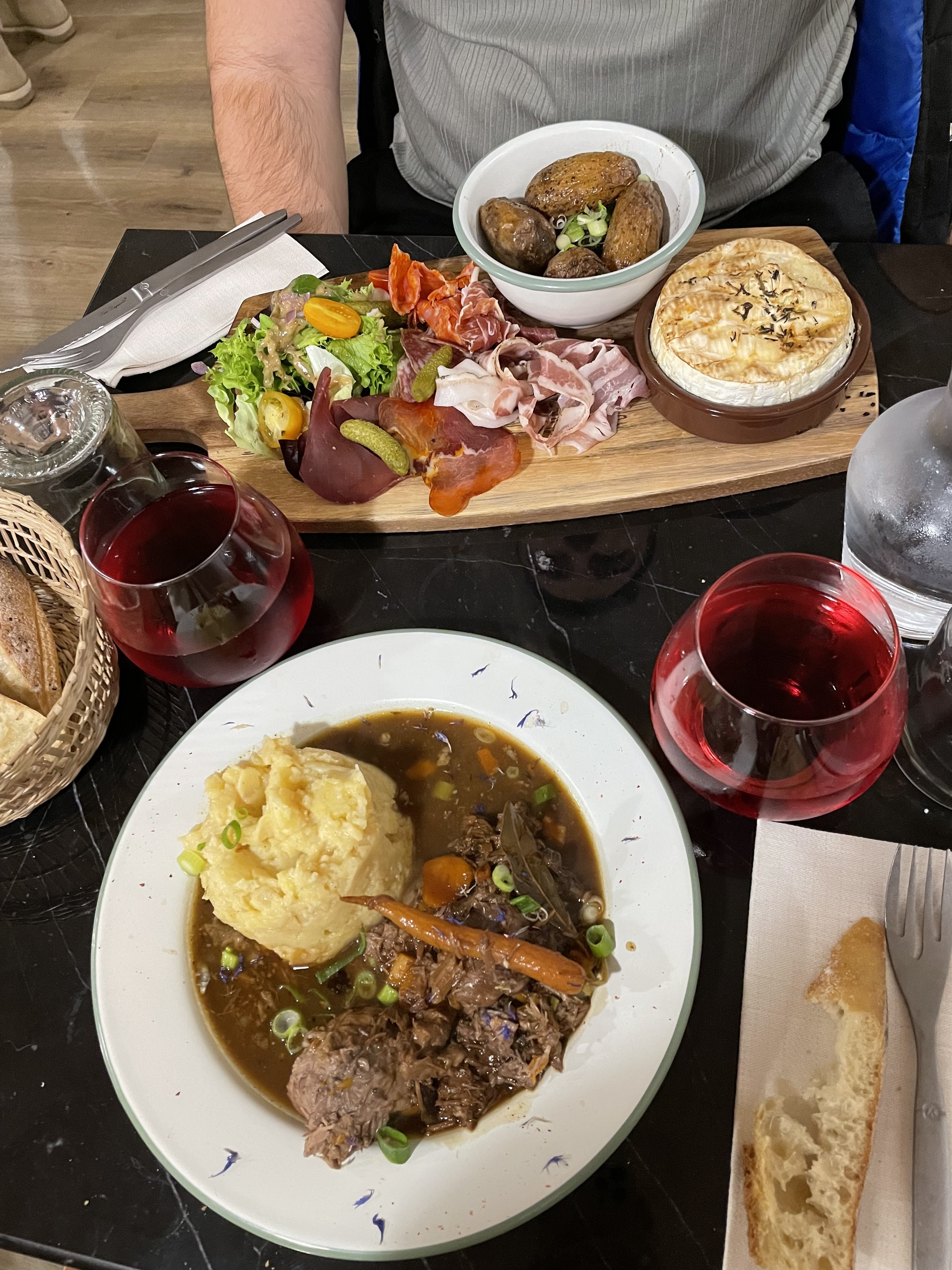 Super repas tout était parfait: du foie gras au biscuit rose en passant par le camembert rôti et de la charcuterie de grande qualité… c’était délicieux ! 😊