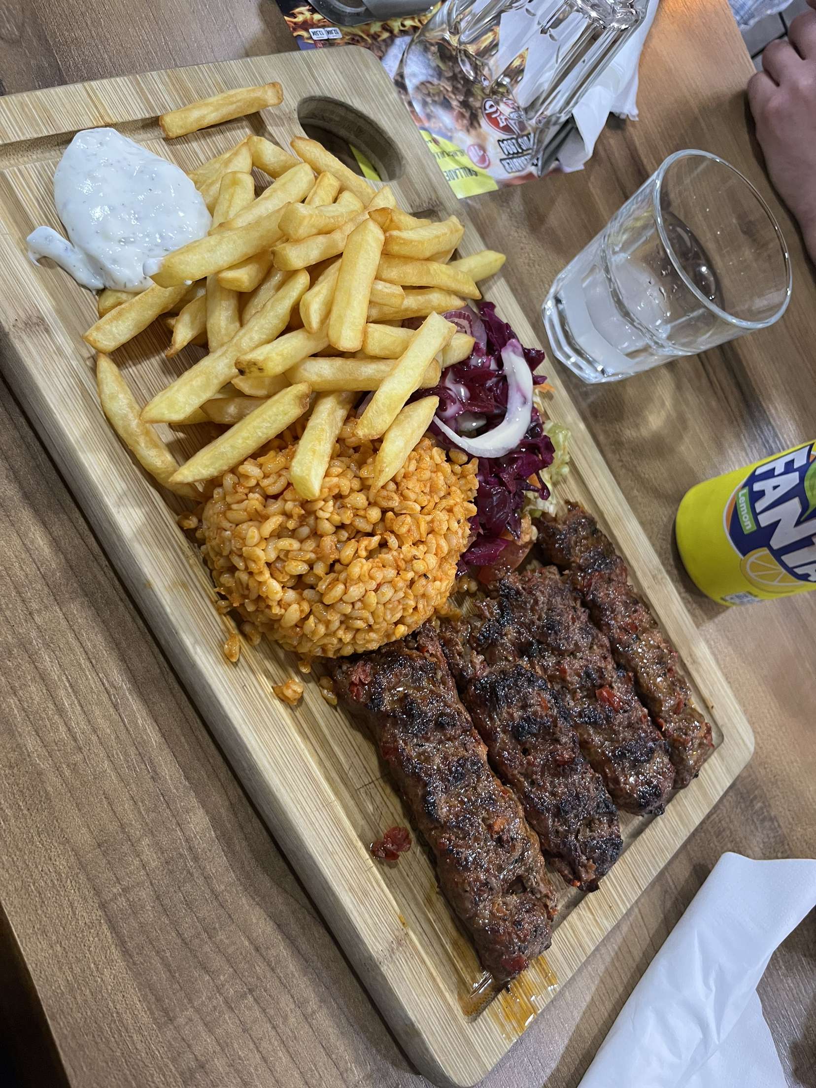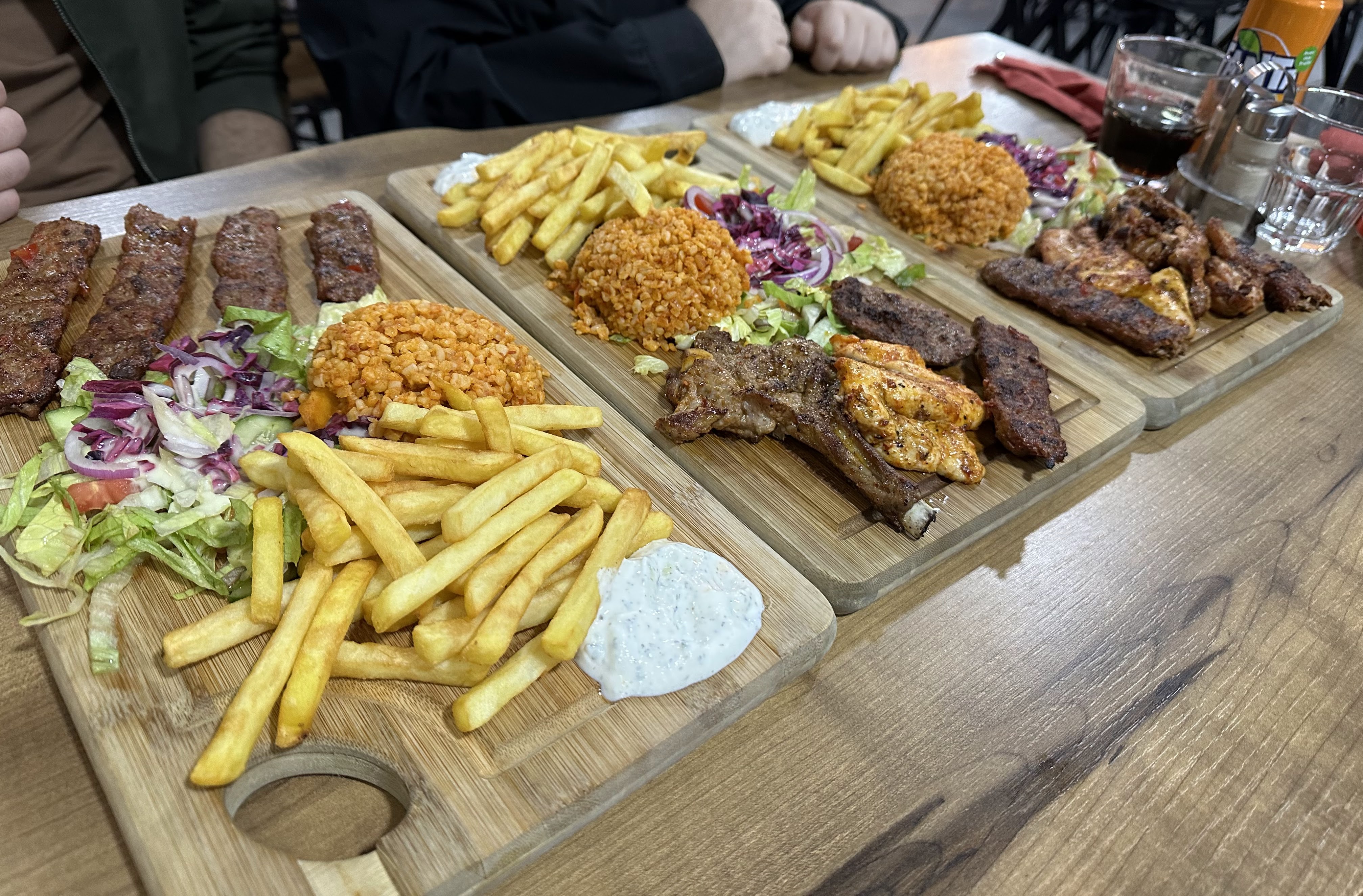 Service rapide, les employés étaient gentils même s'il y avait une barrière linguistique. La nourriture est arrivée rapidement et était agréable : la viande était juteuse et débordante, les frites et la taille globale des portions n'ont pas déçu et nous ont laissés rassasiés pour un bon prix. J'ai vraiment apprécié la sauce (pas épicée) qui accompagnait le sandwich au kebab, et ils n'ont pas facturé de supplément lorsque nous avons manqué de nourriture et avons demandé du ketchup pour les frites.
