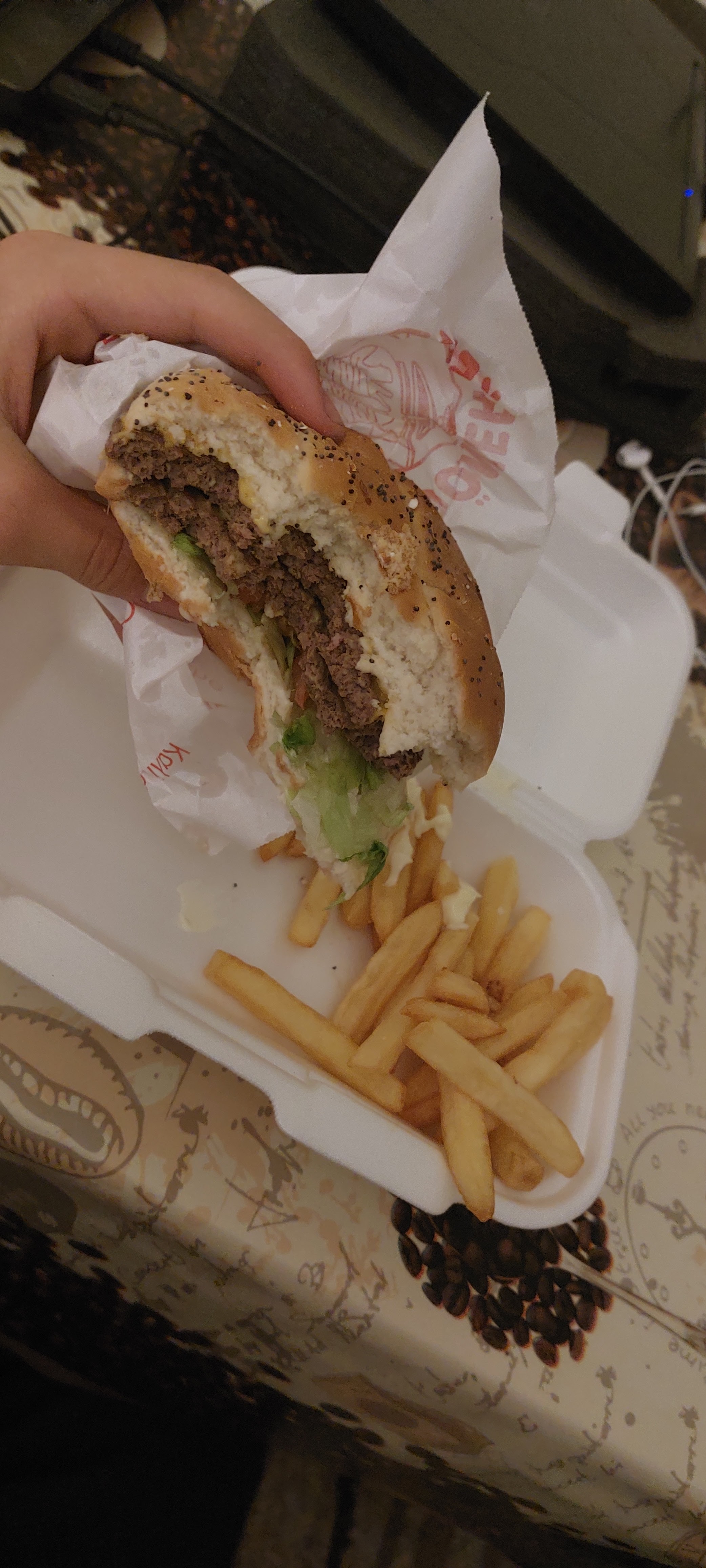 le burger tombe de tes mains et la nourriture n'a pas bon goût du tout, c'est comme si elle avait été congelée pendant longtemps puis décongelée Le seul point positif de ce restaurant, ce sont les frites.
