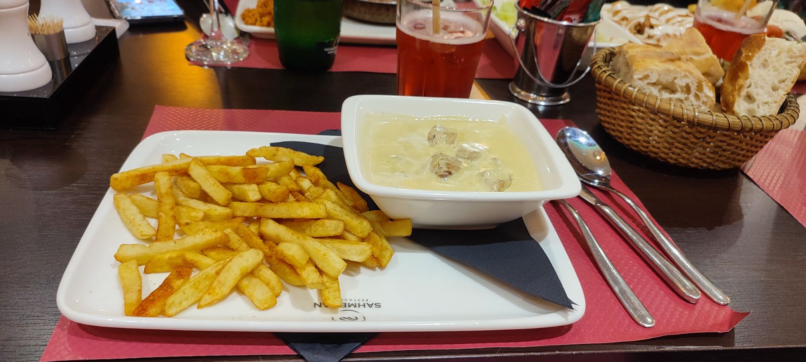 Je suis allée pendant les fêtes de Décembre au marché de Noël avec une amie qui m a emmené manger au restaurant shameran. C était bien malgré le monde. Toutes les tables étaient complètes. Je retournerai à l ocasion avec mes filles pour goûter les entrées qui je suppose doivent être bonne. Mon repas était bon mais pas comme je pensais. Je ne connais pas les plats donc il faut revenir car pour ma part les frittes je n aime pas cela. Je choisirais autre chose. Hum le dessert était succulent ! Mais dans l'ensemble on y mange bien. Le serveur est très aimable. La cuisine est bonne, on étaient bien installés avec mon amie et ses enfants. Je recommande !