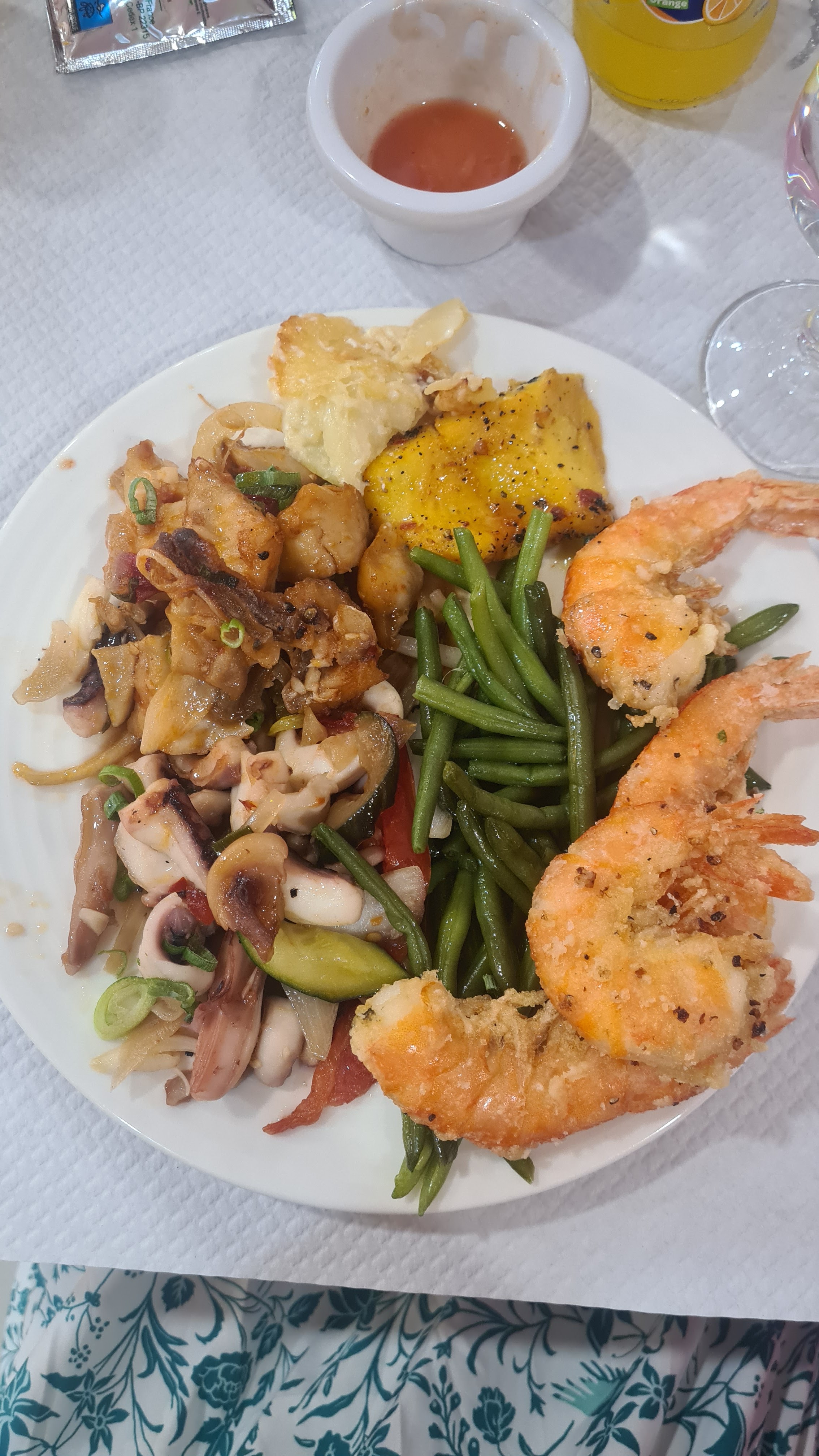 Excellent, bien accueilli. Les assiettes sont enlevé quand nous partons au buffet,je le recommande