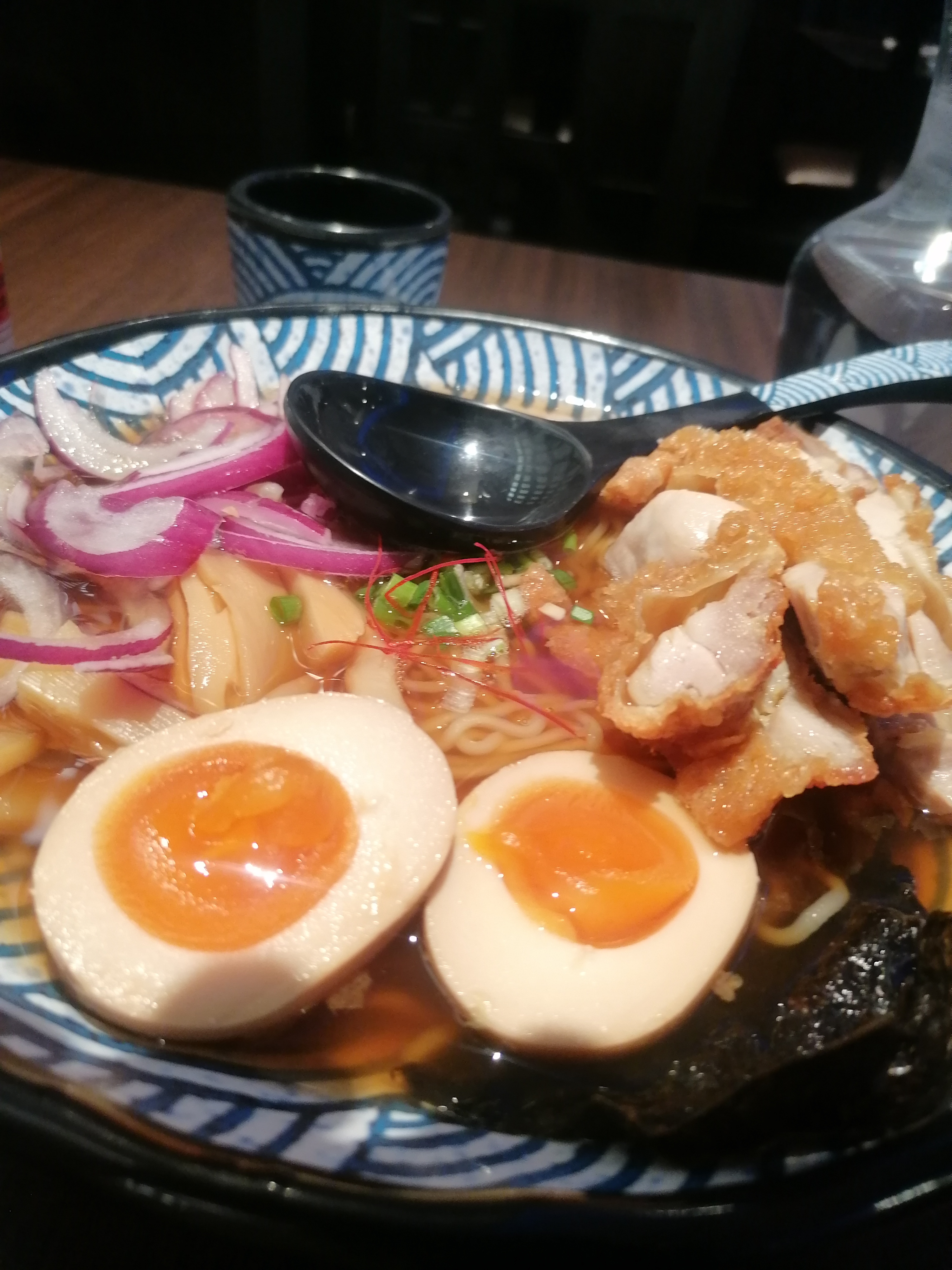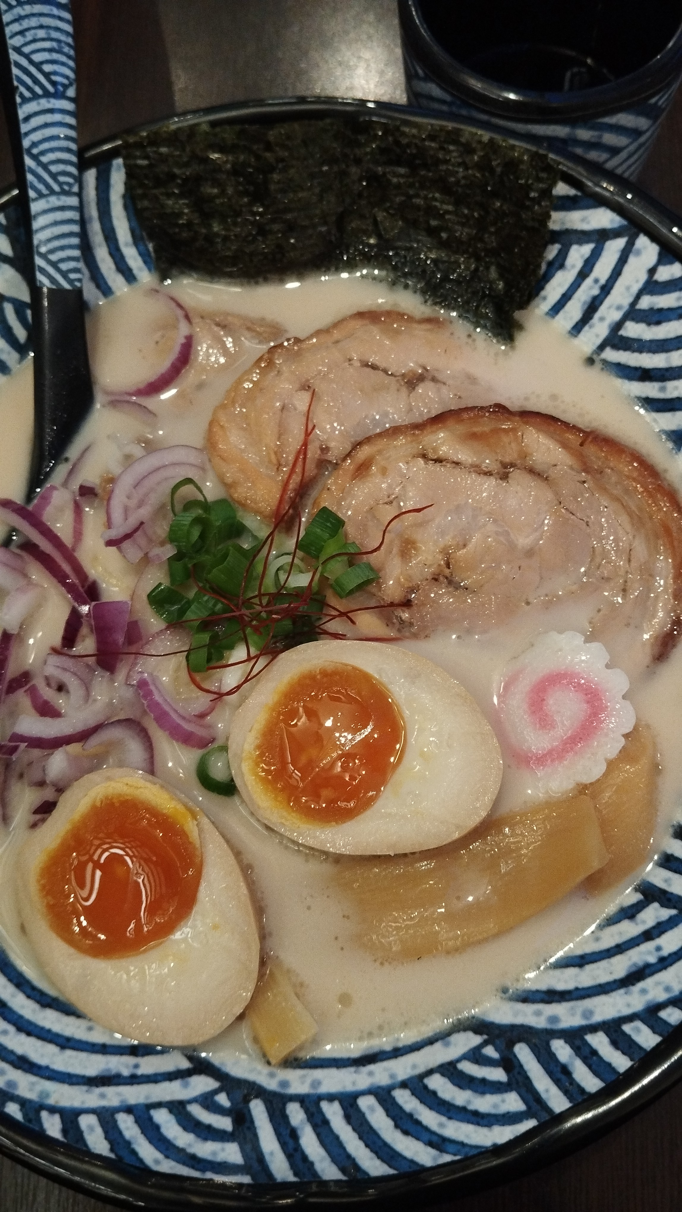 Excellent ! Enfin un restaurant de Ramen dans le quartier ! Grande fan de ramen j'ai absolument voulu testé le grand classique Tonkotsu ramen avec un oeuf ajitama en complément. Le bouillon, crémeux à souhait, est excellent, l'oeuf très bon ! Le chasu très tendre et fondant. Les portions généreuses. J'y retournerai avec plaisir !