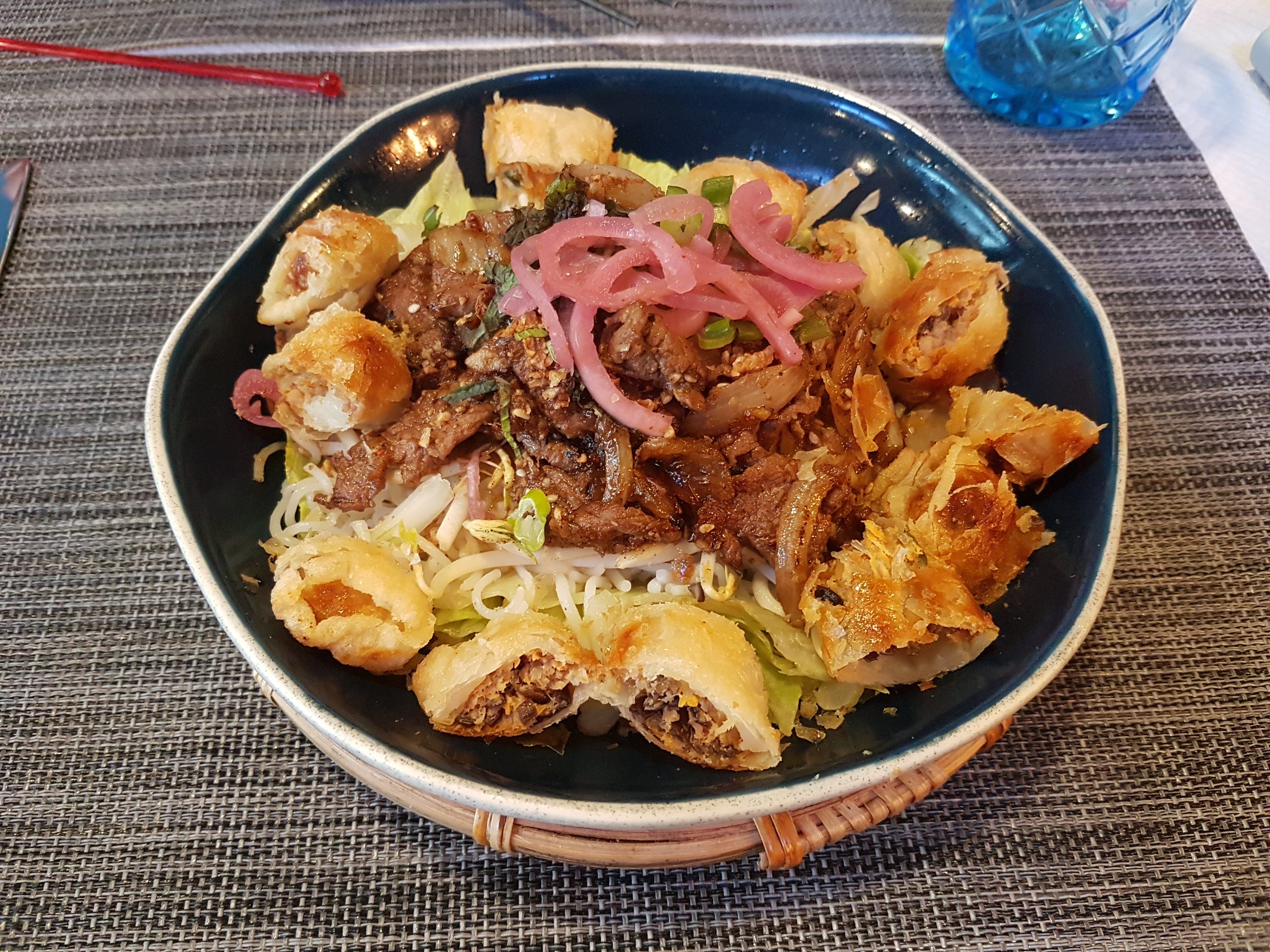 Commande passée par ubereat eat. Un bo bun sans nems très peu de viande. Quantité petite pour le prix. Un beauf lok lak sans trop de goût pas de sel et portion très petite. En conclusion : cher pour la quantité et qualité.