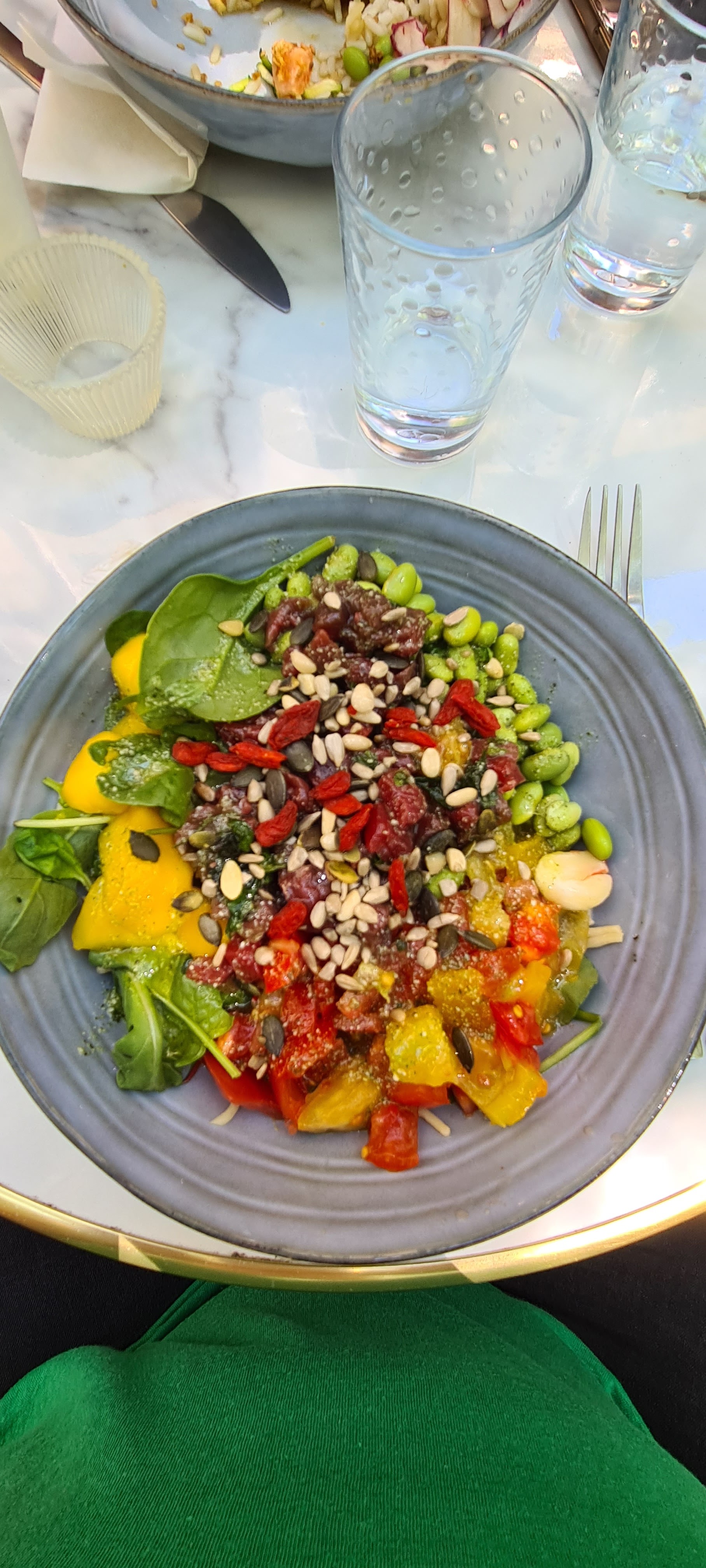 Super endroit joliment décoré et les poke bowl sont exquis. Je conseille le poke bowl ceviche à la daurade et celui au saumon. Et pour terminer en beauté le café gourmand vous permettra de découvrir les différents desserts maison. Serveuse très agréable et de bons conseils. Je recommande.