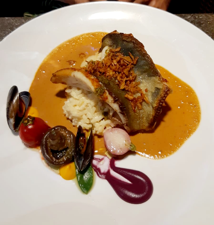 Salle agréable. Le poisson le saint Pierre était parfait. Le risotto était bien crémeux même s'il manquait un petit quelque chose pour le relever.