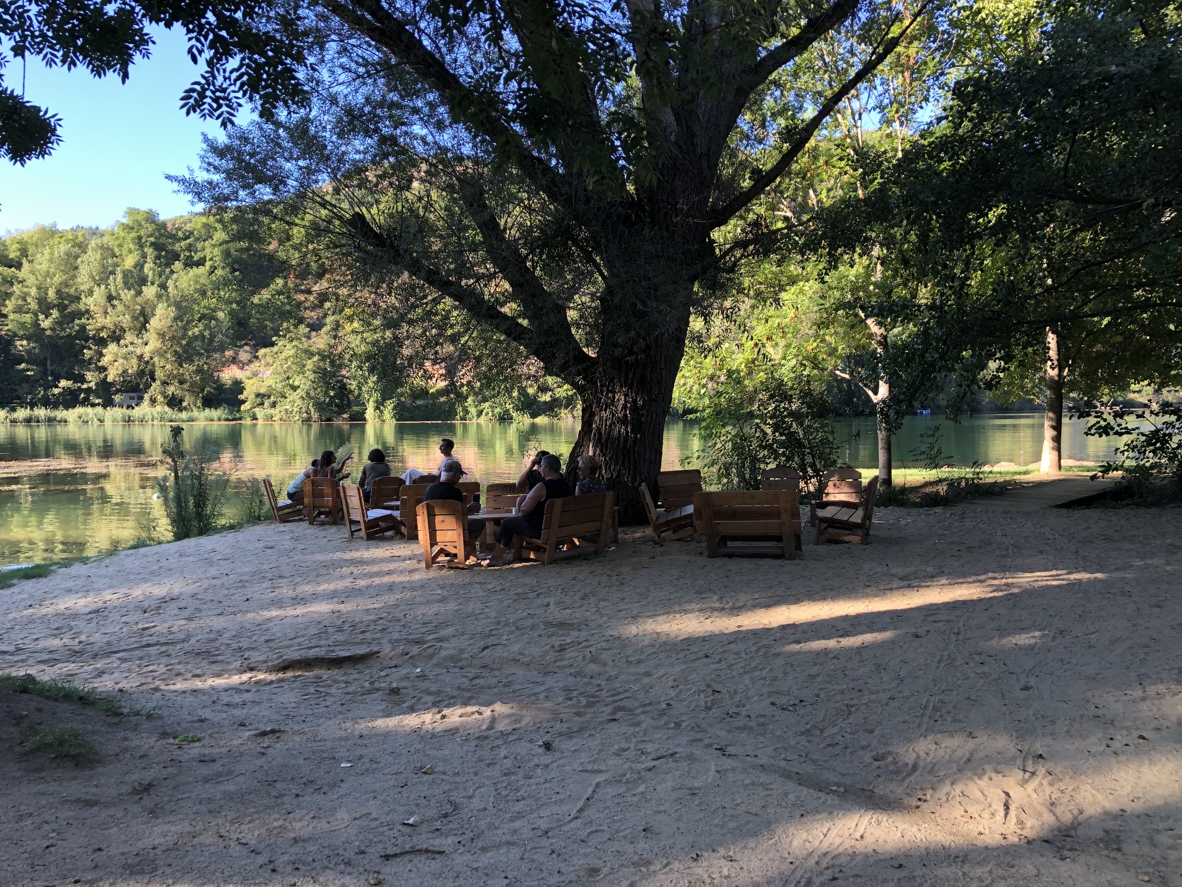 Lieu paisible et beau, facile pour se baigner, arboré, la petite guinguette bien pratique, le hamac à côté... Le restaurant a l'air bien on a pas encore testé. Base pour faire des activités d'eau pas testé encore non plus. Super ambiance pour se ressourcer 🙏🏽