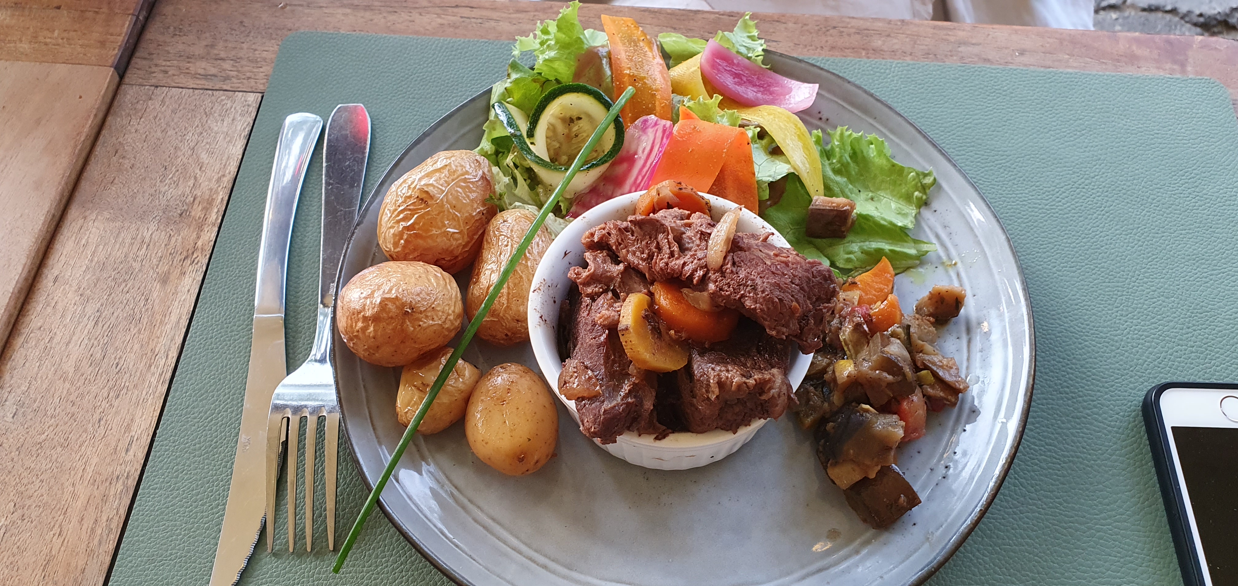 Comme chaque année on se régal! Toujours des produits frais, Bio et locaux. Une charte qualité au top, du végétarien et du végane! Et ce soir surprise, dans le café gourmand une mousse abricot verveine? Très surprenante, et rafraîchissante! J’A-DO-RE 🍀💙😜