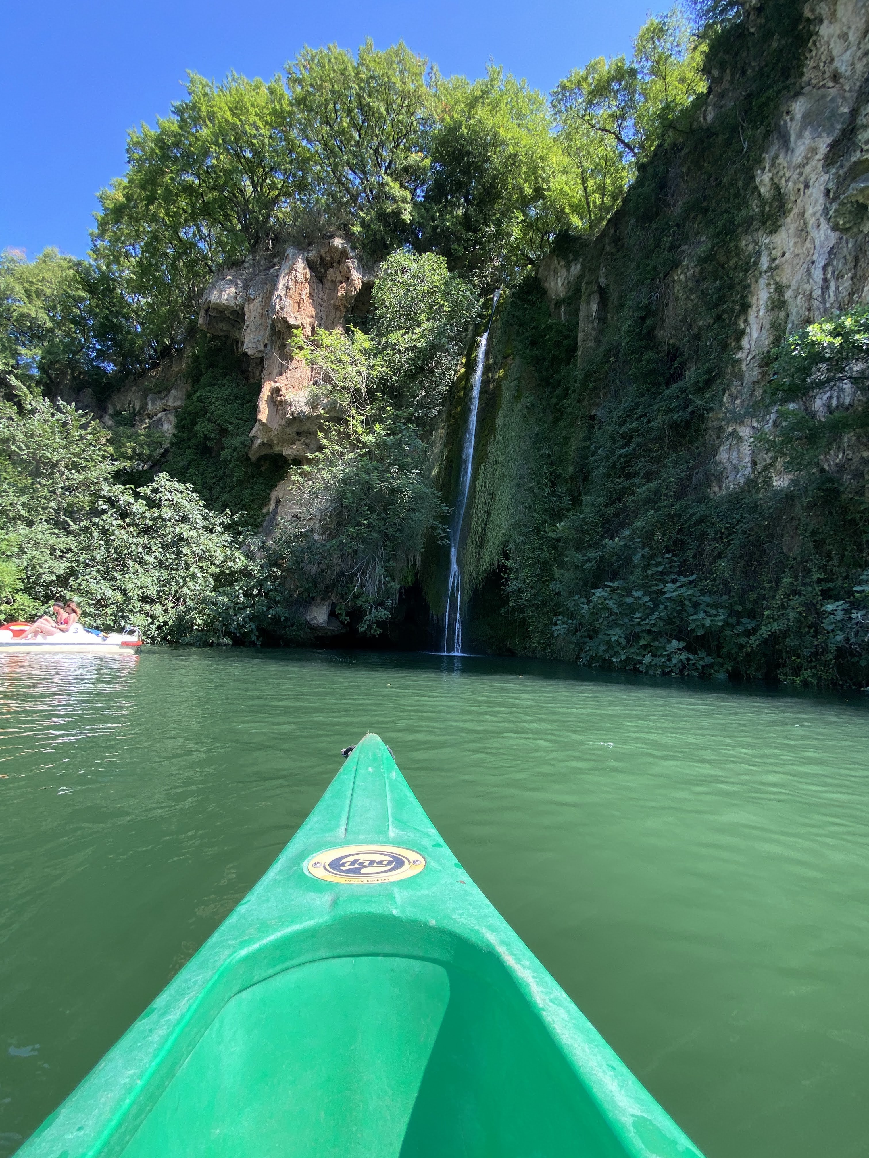 Lieu vraiment super sympa. Nous avons juste loué des canoës, petit aller retour sympa à la cascade, jeux d'eau et farniente entre ombre et soleil. Superbe site
