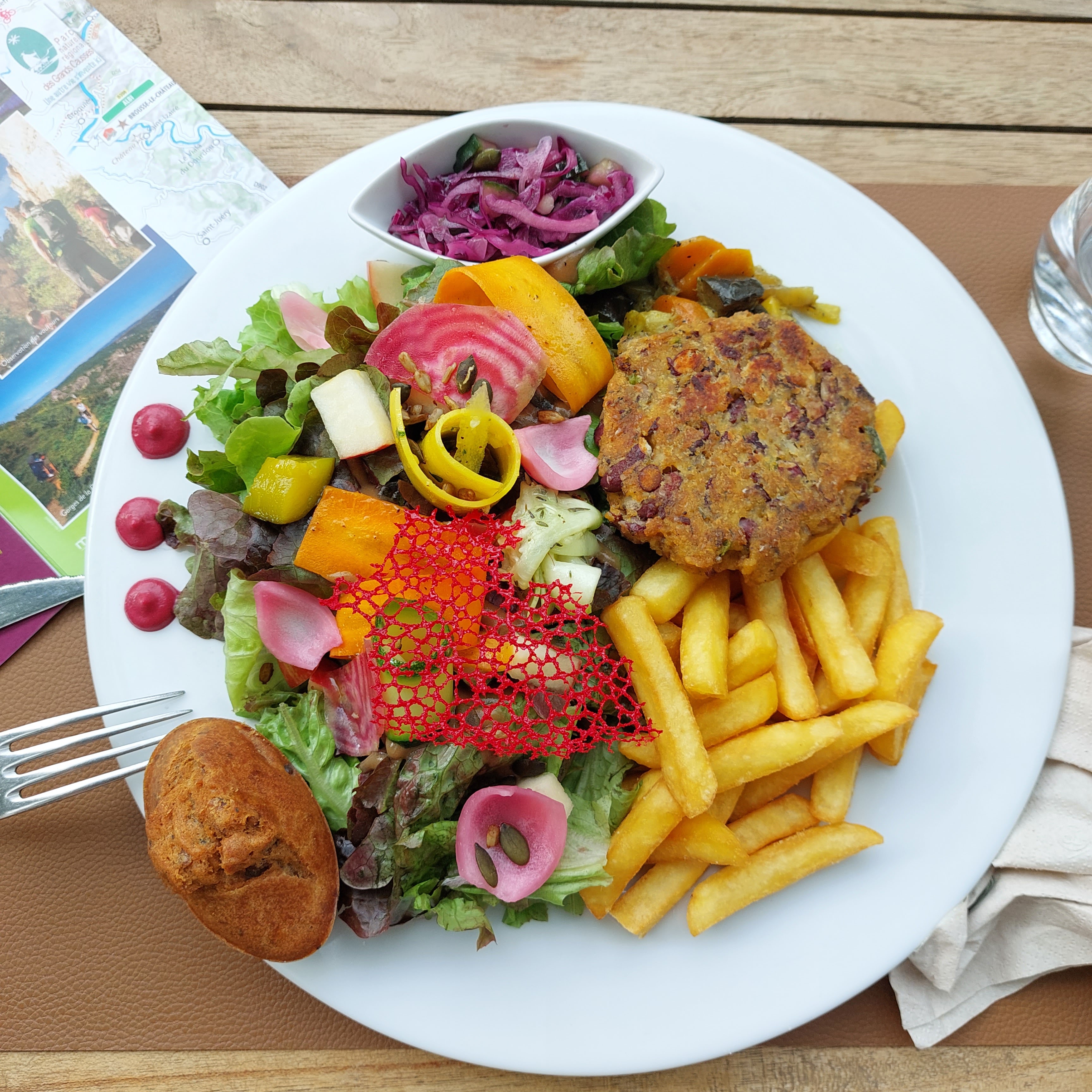 La meilleure salade végė jamais mangée.... et j'en ai mangé quelques unes ! Tout y était : les saveurs, l'originalité, le prix.... Service très sympa, vue superbe et ambiance très agréable ! À ne pas manquer!