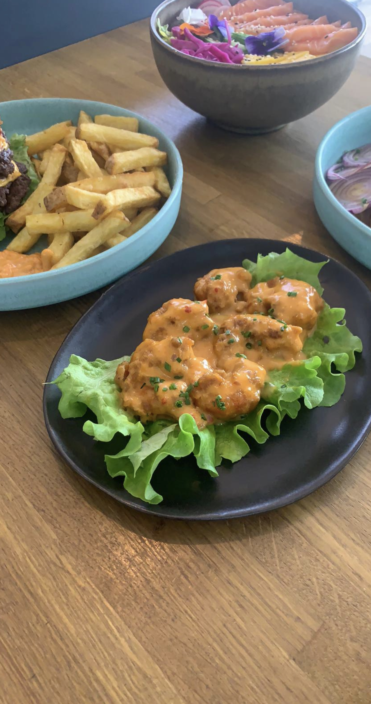 Les plats sont excellents, les dynamites shrimps sont exceptionnelles!! Le pain des Burgers ultra moelleux, personnel sympathique.