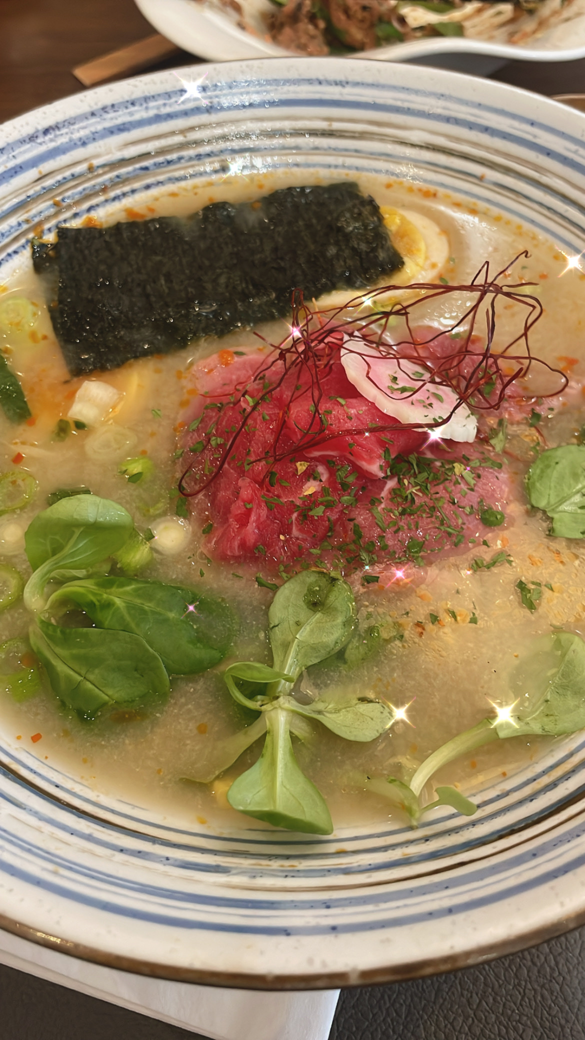 Meilleur ramen que j’ai manger 🥰 Dans un cadre magnifique, musique douce,personnel très agréable, très belle déco. Je recommande à 100%