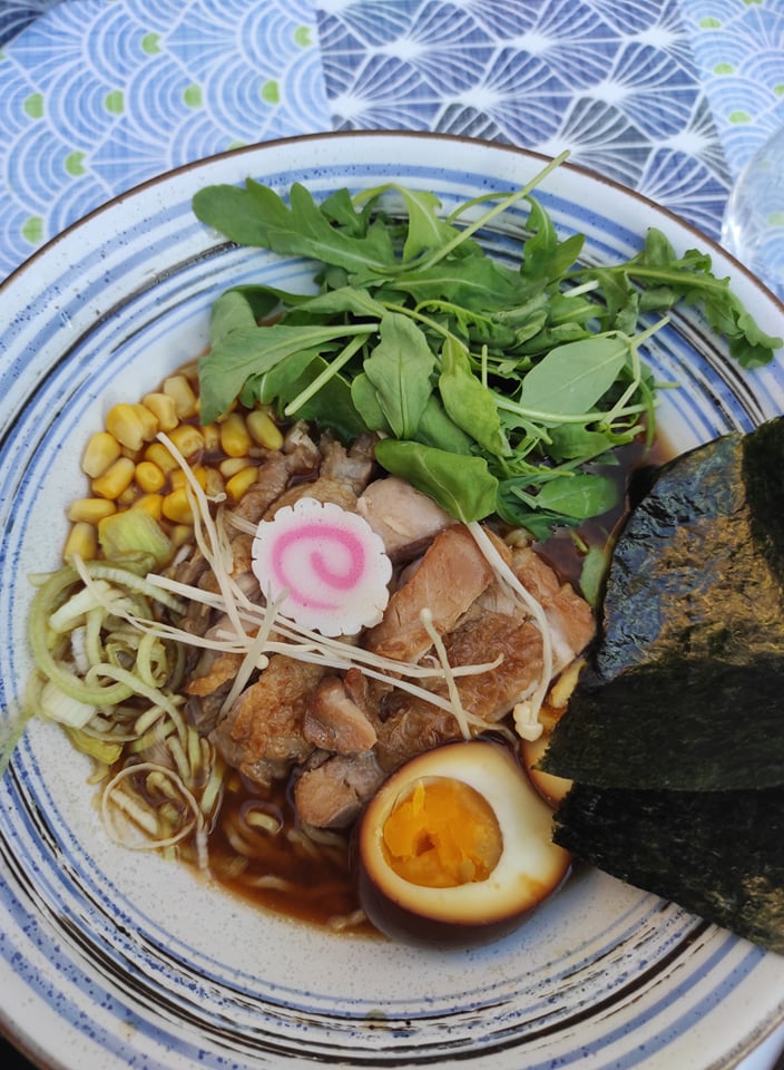 Délicieuse expérience 🤤 Dès le début du repas je me suis senti bercé dans de délicieuses saveurs japonaises. Des Takoyaki aux copeaux de bonite (Katsuobushi) ont ouverts l'appétit. Ensuite, un Ramen Shoyu avec du Chashu (vraiment bien réussi la cuisson), du Narutomaki et des feuilles croquantes de Nori, sans oublier l'œuf Nitamago comme il se doit. Pour finir j'ai pris un Taiyaki en dessert, je n'en avais jamais mangé un frais bien croustillant avec de l'anko (purée d'haricots sucrés) dedans. Sacrément bon moment passé avec des amis qui ont eu le même ressenti. On a fini l'après-midi à discuter en terrasse et à boire du saké 🥳