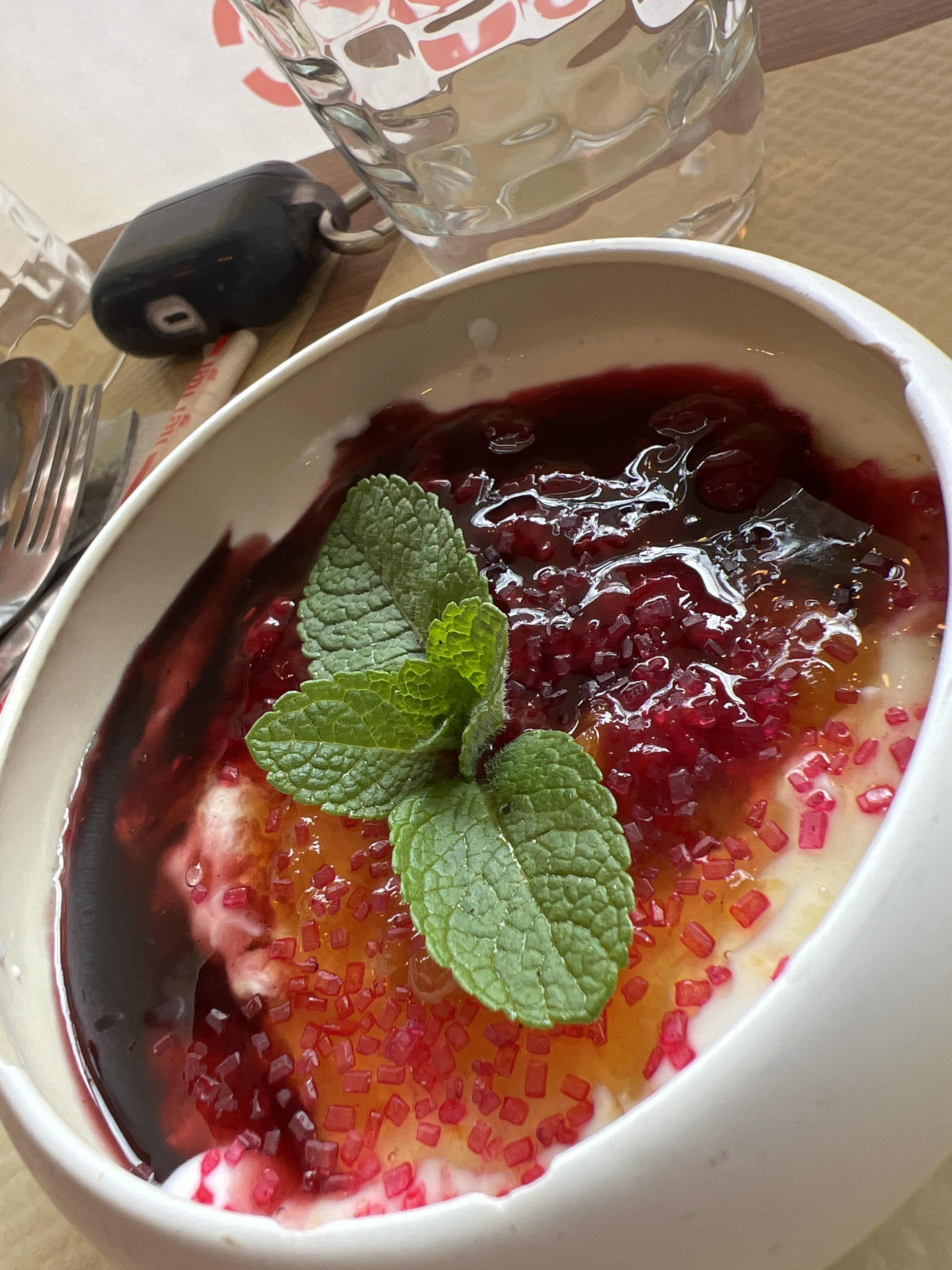 Ben voilà ! Un très chouette lieu, petit et très convivial. L’accueil est chaleureux, la cuisine est juste et généreuse. C’est un endroit à recommander sans nul doute! Je ne pose qu’une photo du dessert mais le bœuf loc lac était aussi beau que bon