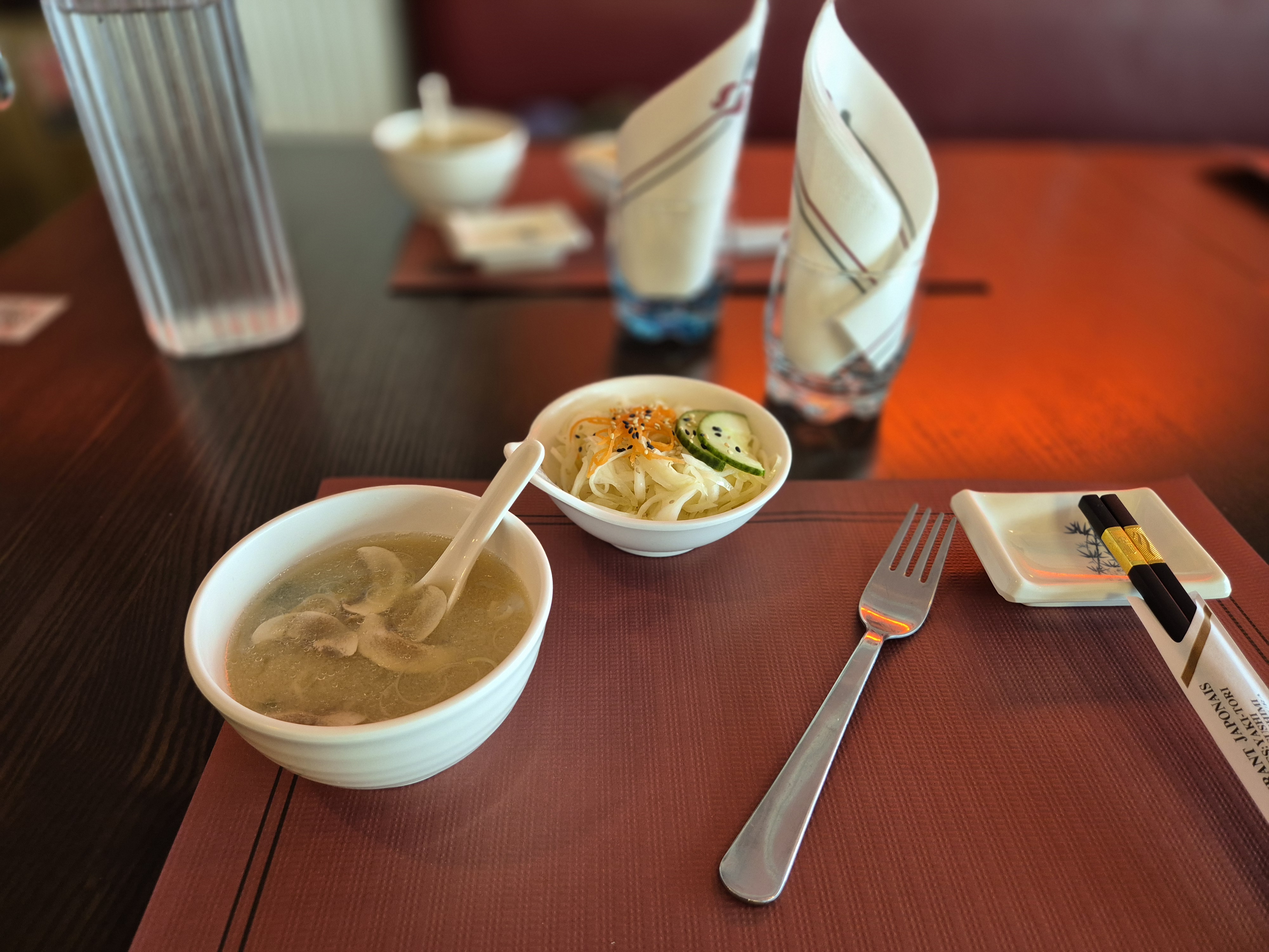 J'ai entendu parler de ce nouveau restaurant par mon fils et franchement il y a de quoi. L'ambiance est très chaleureuse. La serveuse est sympathique et souriante. La carte est très variée puisqu'ils proposent du japonais et du thaï avec option végétarien. Et avec une carafe d'eau citronné délicieuse. Bref je recommande !