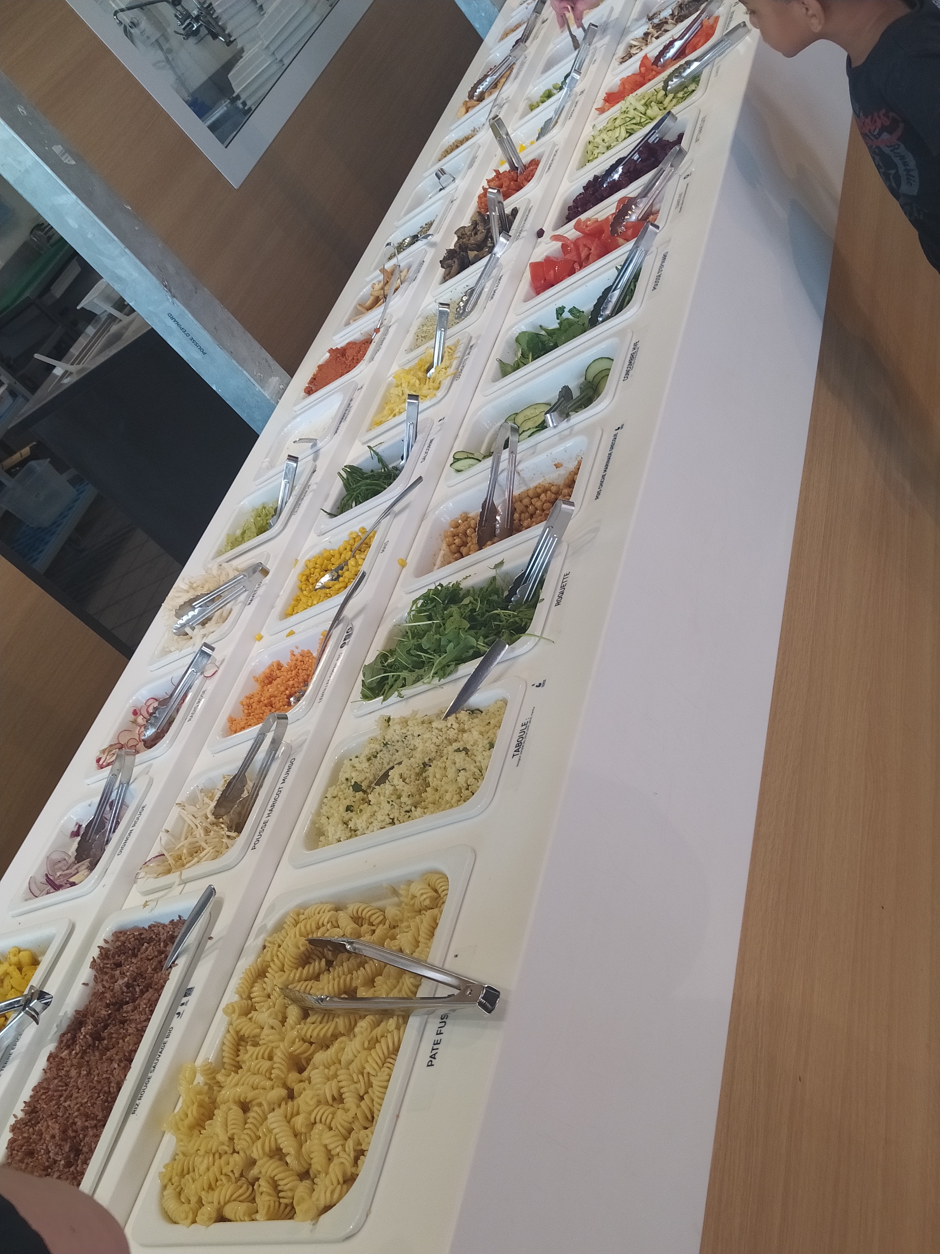 Large choix d'ingrédients et pas de limitation. On met tous ce que l'on veut dans notre salade. On y mange bien et sain pour pas cher du tout. Plusieurs formules sont possibles.