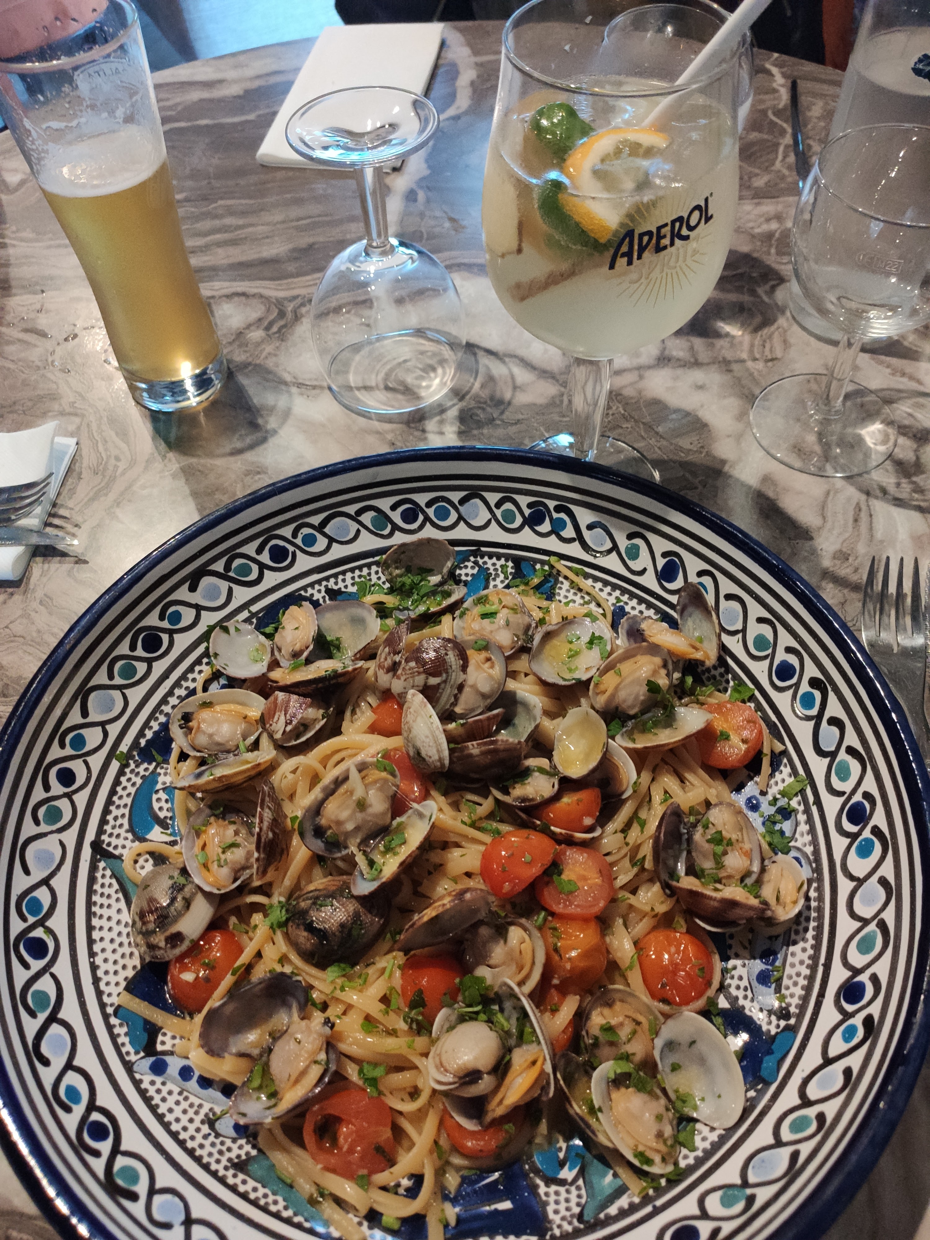 Au détour d'une rue nous sommes tombés sur ce petit resto. Les avis étaient unanime du coup on a tenté l'expérience. Sans regrets L'accueil est convivial le service l'est tout autant et la cuisine est soignée et goûteuse ! Linguine a vongole juste parfait l'assaisonnement rien à dire la cuisson des pâtes au top tout y est. Et en plus le plat qui arrive est juste ÉNORME. Je recommande ++