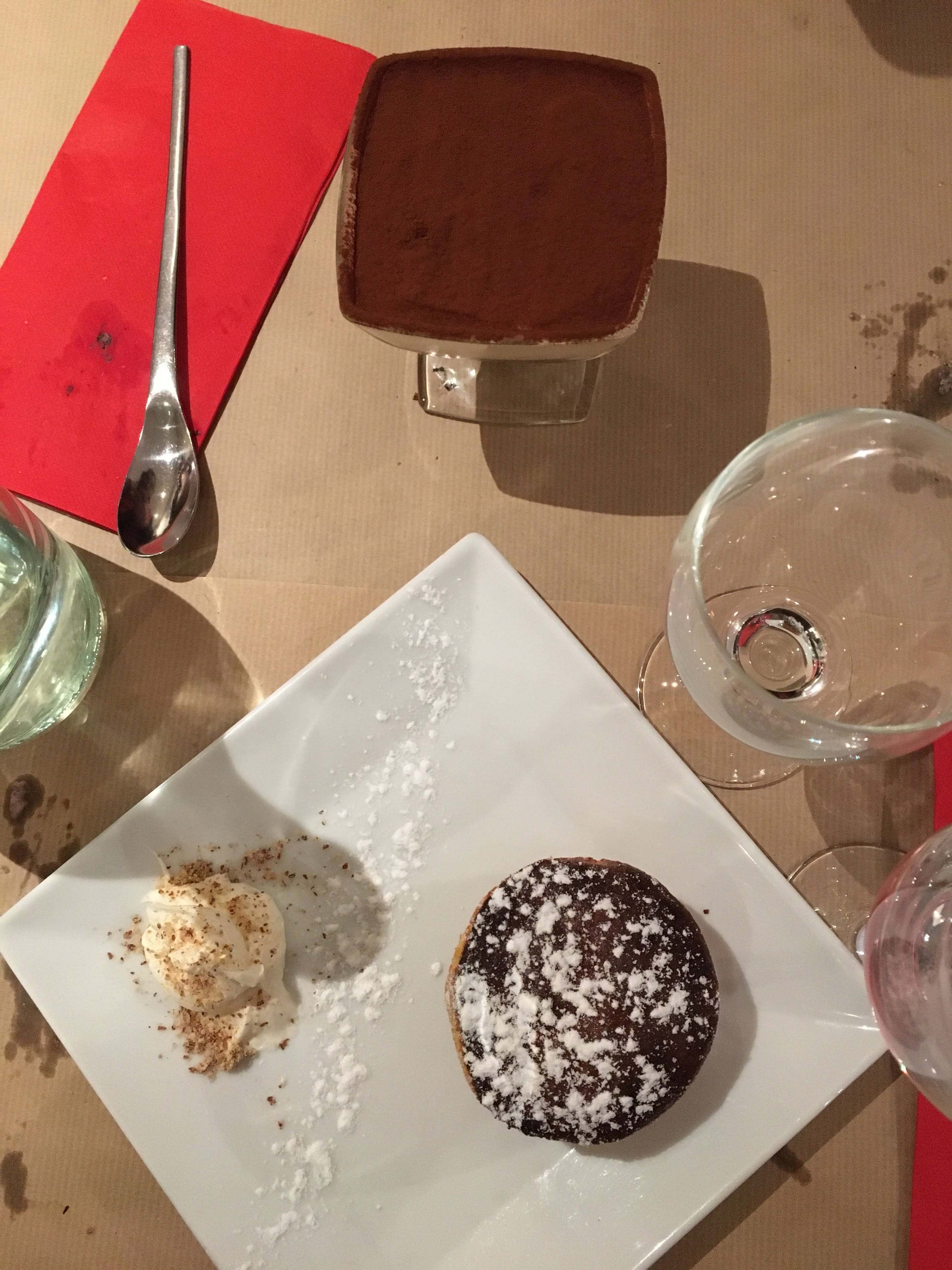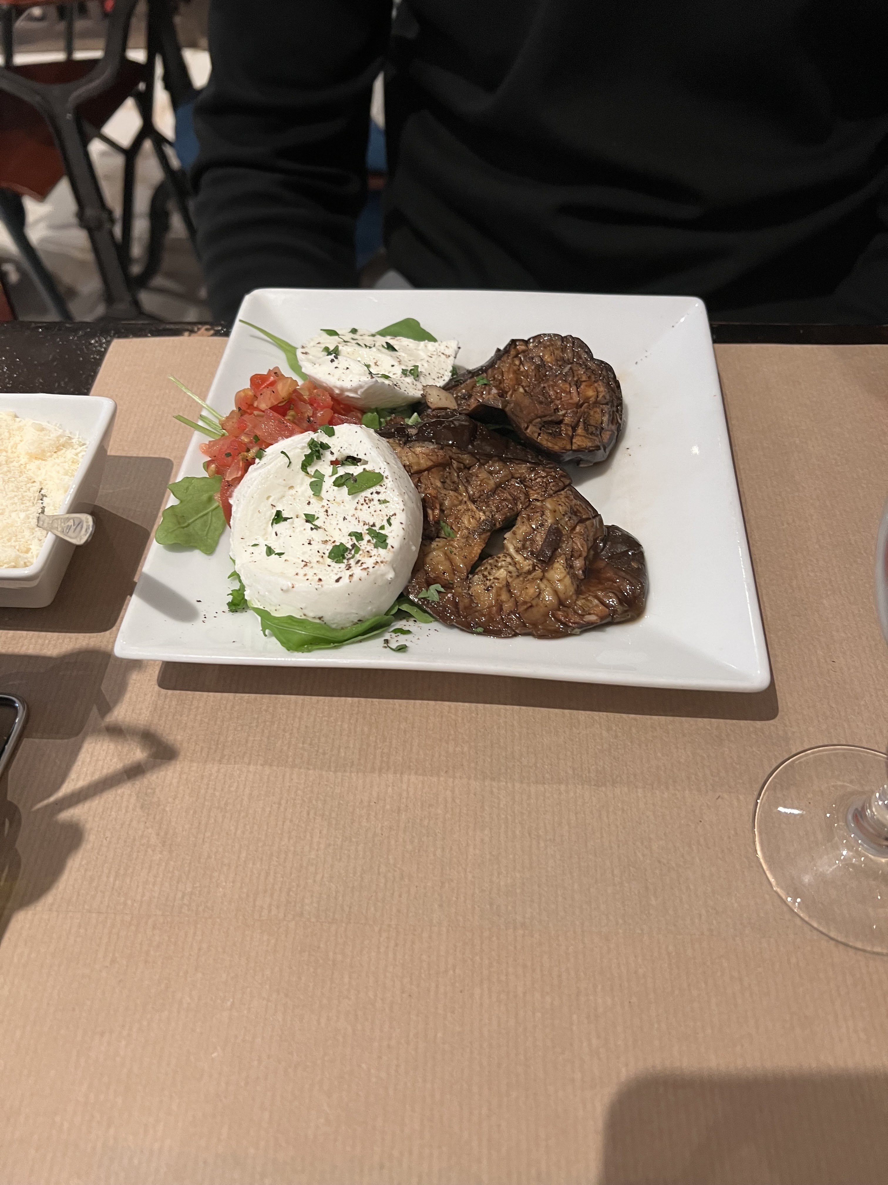 Bons plats du début à la fin du repas, avec notamment une énorme Burrata et des flans courgettes/poivrons vraiment bons en entrée, diverses assiettes de pâtes réussies en plat, et un tiramisu réussi. Une bonne expérience, nous reviendrons !