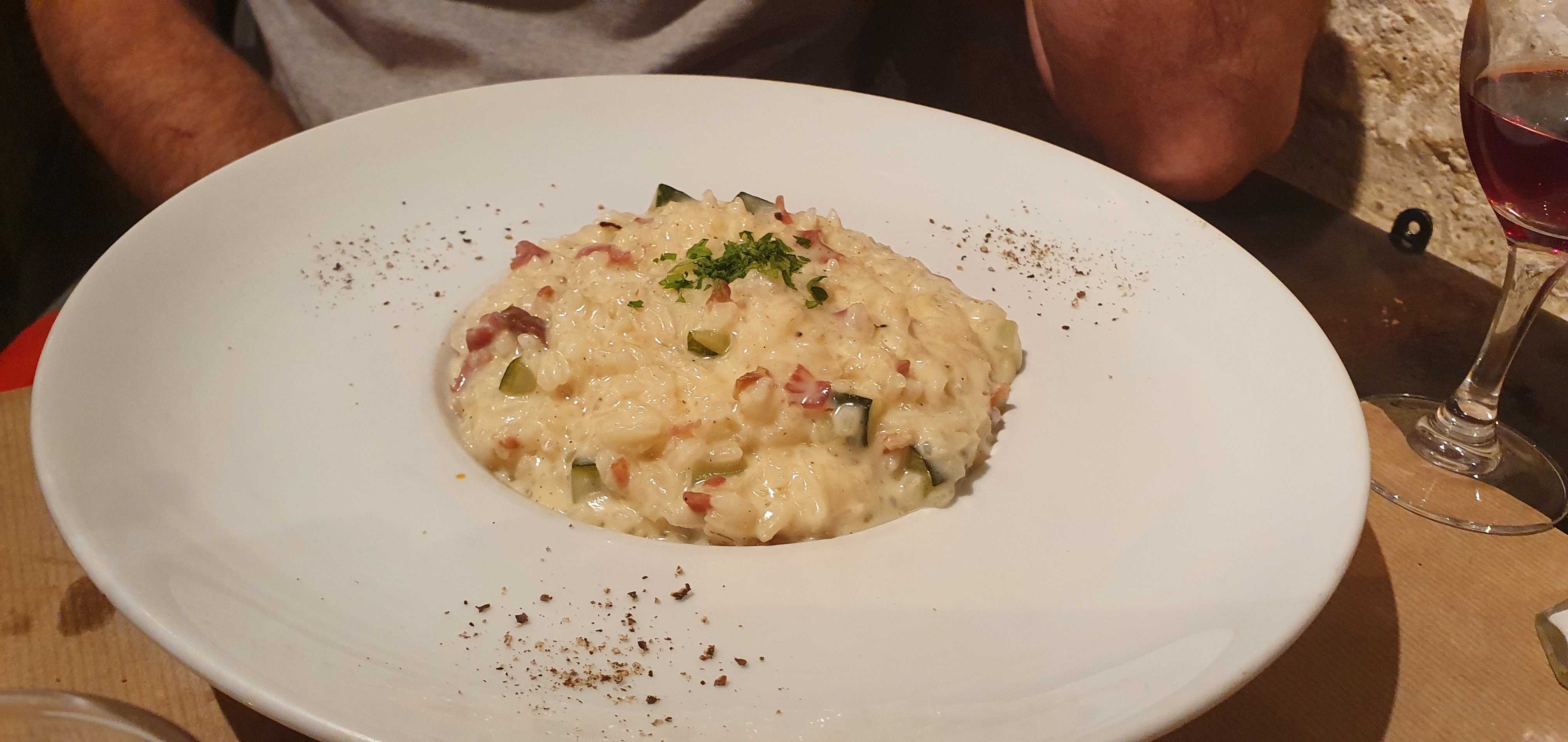 Si je pouvais mettre plus de 5 étoiles je le ferais... Cadre très agréable, serveur particulièrement sympathique et aimable. D’emblée, d’énormes olives vertes juteuses sont posées sur notre table. Vient le plat principal, j’ai opté pour le risotto parmesan aux courgettes et jambon de parme... Un régal !!! Je reviendrais ! (Mention spéciale pour le risotto gorgonzola et poire que ma mère a choisi de déguster! Original et très savoureux)