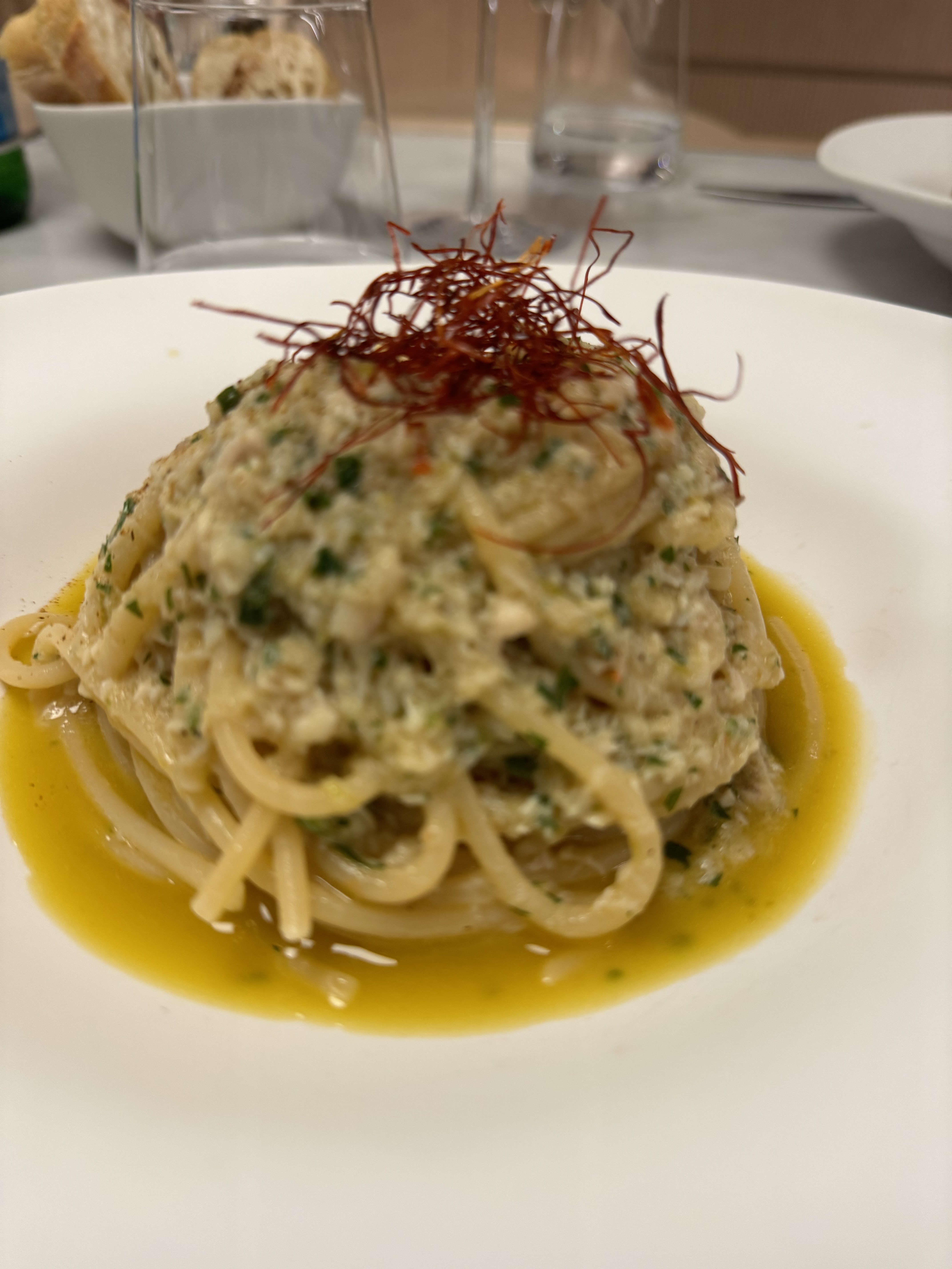 Nous avons visité ce restaurant par hasard à Beaulieu sur Mer et avons été agréablement surpris ! Parce qu'il faisait cool au restaurant, nous avons pensé que nous allions simplement prendre un verre de vin et manger ailleurs. Le serveur a immédiatement augmenté le chauffage et nous sommes restés. Il nous a même proposé une petite collation sans vin. Le point positif ! Le concept est la Sicile sur la Côte d'Azur. Si vous recherchez du poisson frais, préparé par le chef comme VOUS le souhaitez, alors c'est l'endroit où aller. Le restaurant n'a ouvert que quelques jours auparavant. Le service était parfait, la nourriture divine. Nous avons commencé par des tacos au saumon et à l'avocat et les avons partagés - un vrai régal ! Nous avons suivi avec des pâtes à l'espadon et un risotto aux bulles de truffes - oui, c'était super ! Dessert, nous avons choisi le canello - une spécialité sicilienne qui valait un 10/10. Il y avait tellement d'idées au menu qu'il faudra revenir pour tester d'autres plats. Ah et l'ambiance ? Élégant et minimaliste, blanc et beige - de la musique pour vous accompagner pendant votre dîner - et même sur le patio, il y a de la musique, un éclairage romantique (même si c'était l'hiver) et nous avons hâte de nous asseoir là-bas en été avec la vue sur les bateaux dans le port. p.s. D'habitude, je ne déclame pas et ne m'extasie pas sur les endroits, mais cela touche vraiment un point faible ! Le propriétaire lui-même travaillait et nous servait également, amical et gentil. Oui, nous reviendrons !
