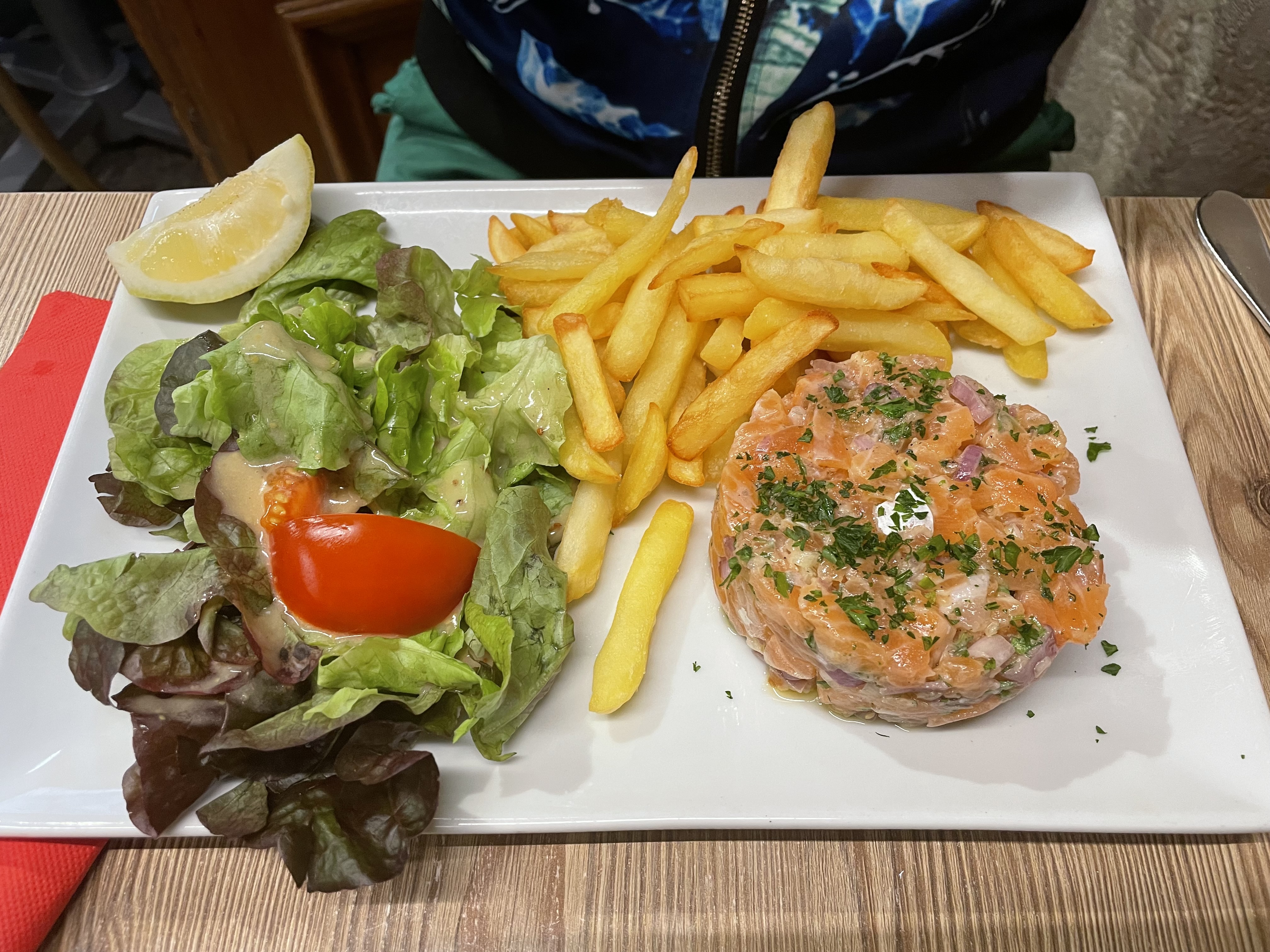 Repas au top (tartare de saumon, suprême de poulet sauce reblochon). La déco est très sympa. L'emplacement est bien. On a meme eu le droit à une scène de ménage entre les employés, ça met l'ambiance haha (bon en vrai on s'en fout, on sait bien que c'est pas toujours simple, mais soyez plus discrets et attendez la fin du service la prochaine fois) Je recommande !