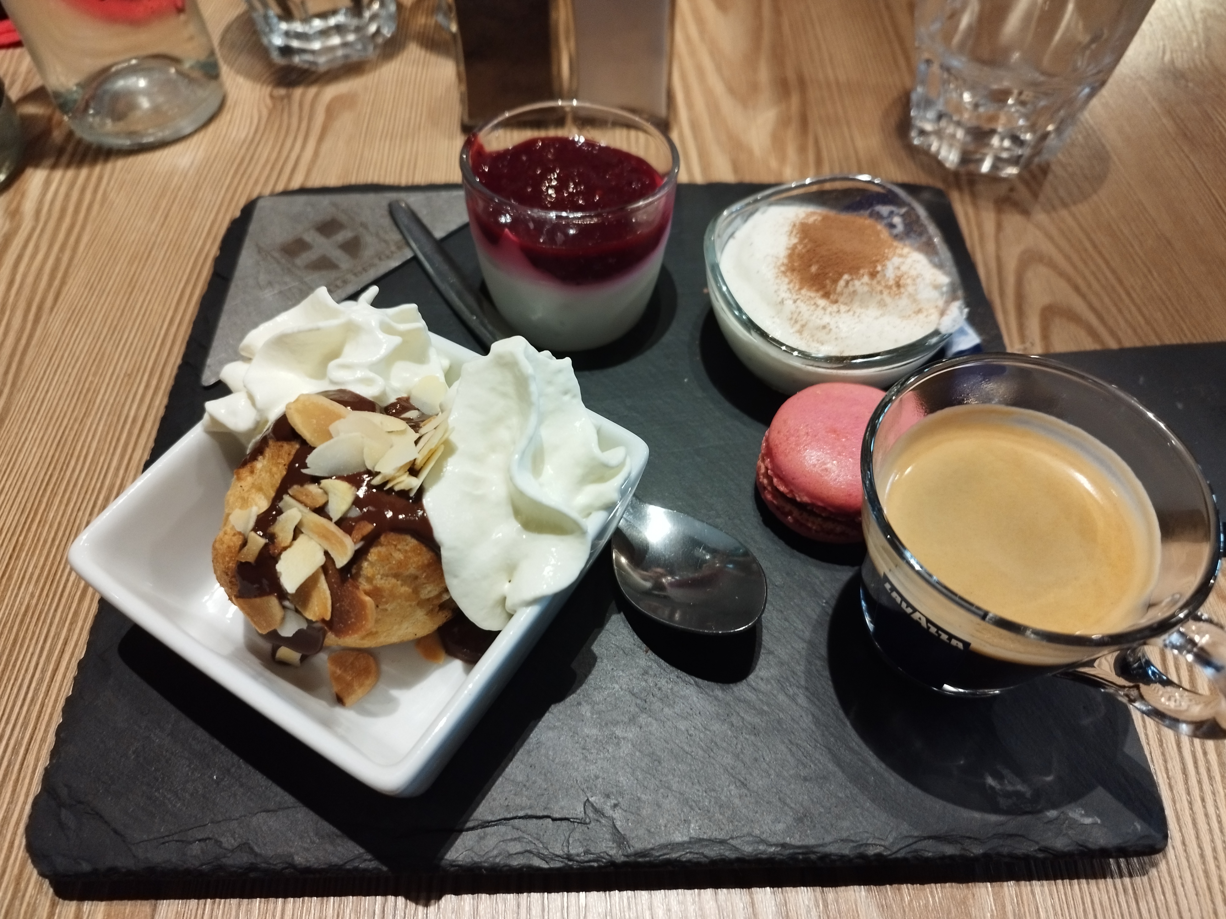 Personnel sympathique et belle salle intérieure. Niveau plat déçu par le gratin de crozet, trop classique et sans intérêt. Très bon dessert fait maison.
