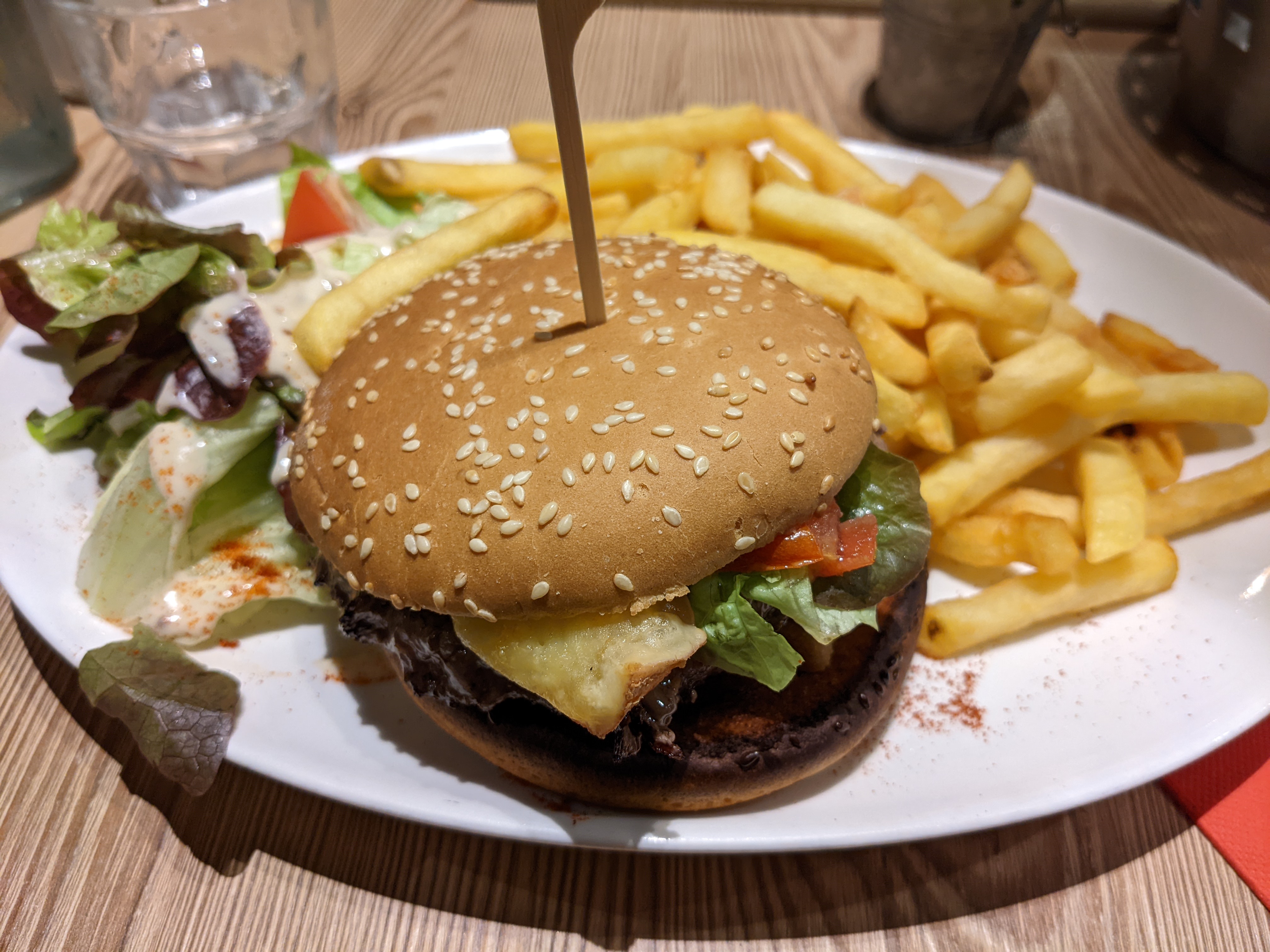 Petit établissement qui sent la fondue, le serveur est très efficace mais la nourriture est moyenne, le pain du burger savoyard très quelconque et les frites pas terribles. Heureusement le tiramisu était correct et le quartier sympa