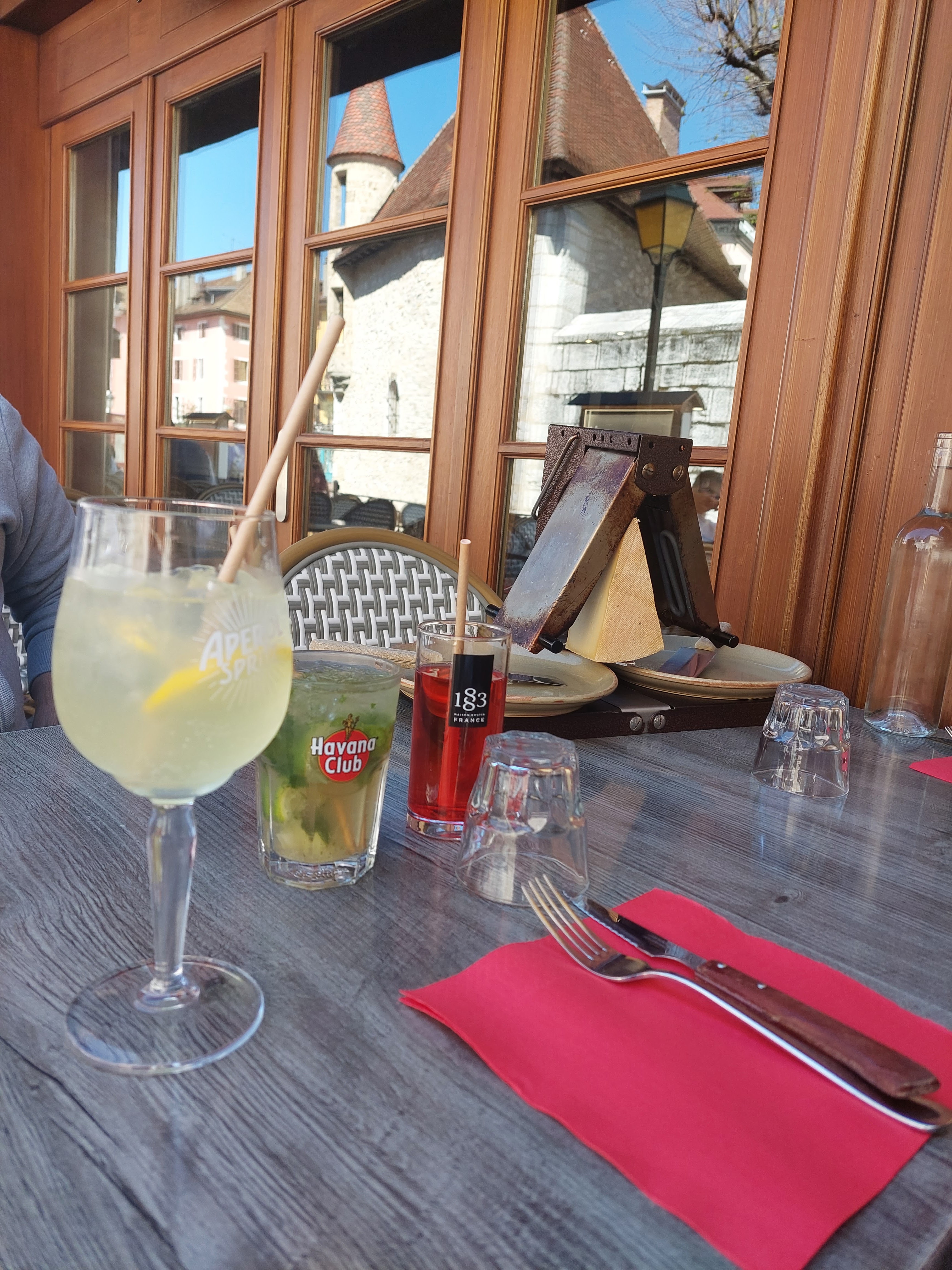 Bon restaurant avec des prix raisonnables pour la vieille ville d'Annecy. Vous êtes littéralement au cœur de la ville en train de déjeuner en terrasse. Leur fondue est fortement recommandée. Très savoureux et je parie que 2 personnes affamées rendront difficile de tout manger. Personnel gentil et gentil, attentif et toilettes propres.