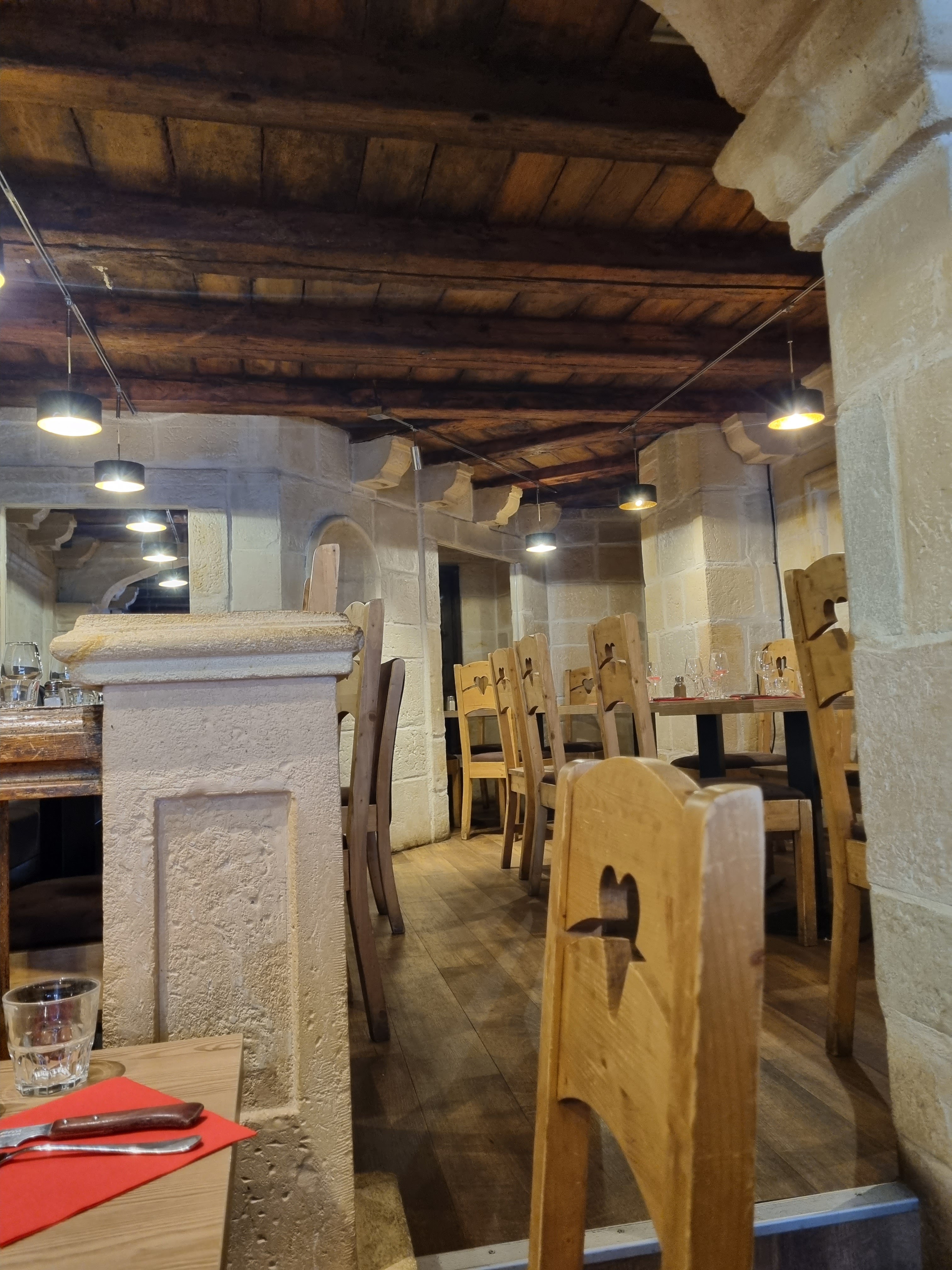 Restaurant très chaleureux à Annecy. La décoration en pierre est très belle. Nous avons commandé un gratin de crozets très bon. La tartiflette aux champignons est généreuse et bien gourmande. Tout est arrivé bien chaud. La faisselle au coulis de fruits rouges est la note parfaite pour terminer le repas. Le café gourmand est très bon également. Personnel très gentil. On a passé un très bon moment.