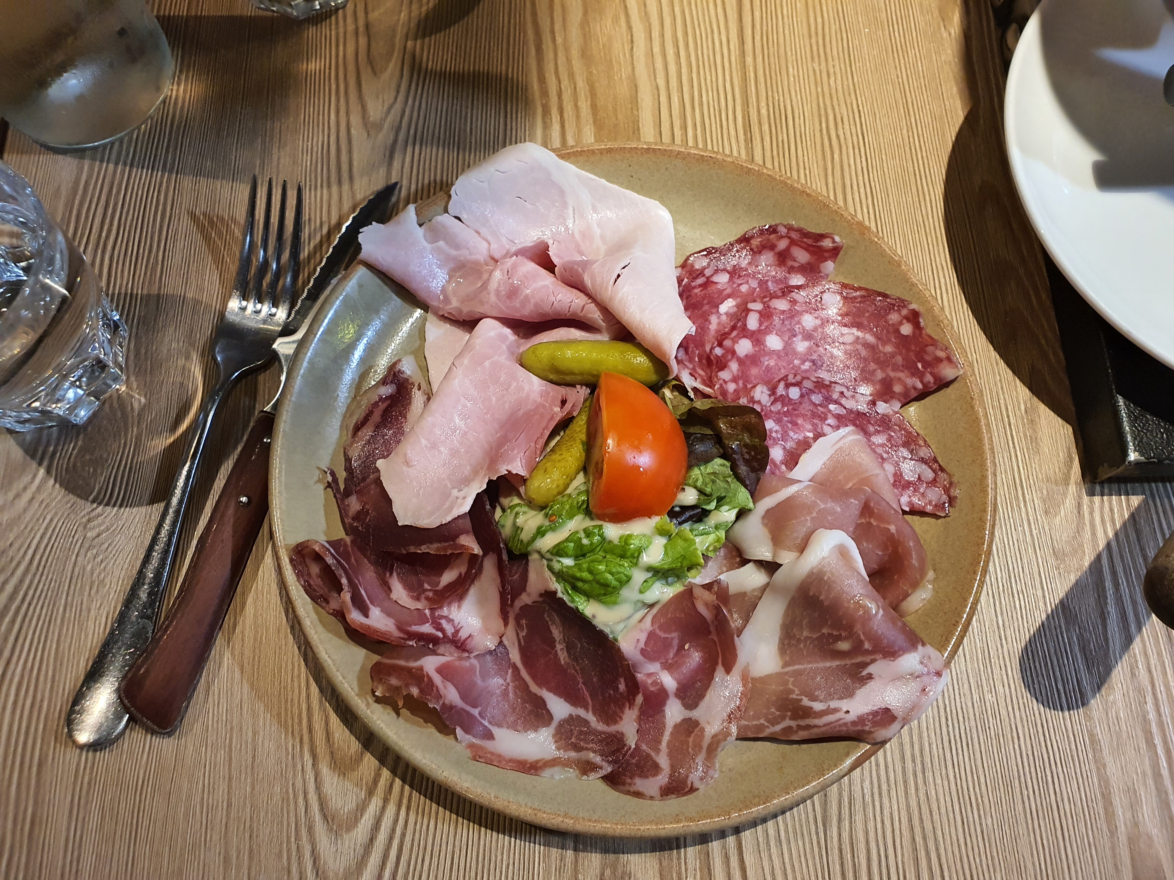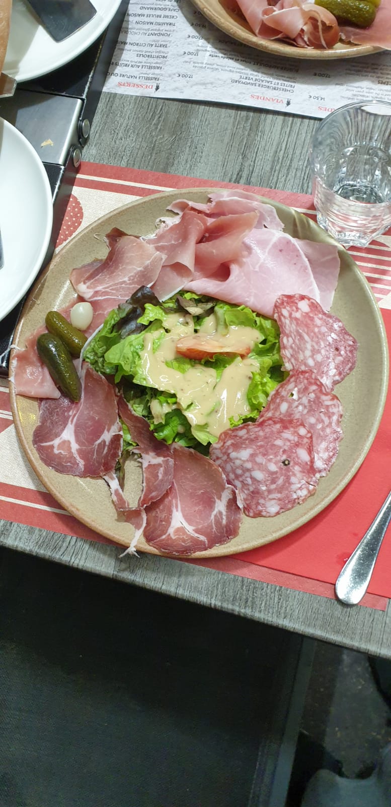 La salade était bonne mais pas assez copieuse pour le prix (19,50e) avec seulement 1 tranche de jambon 3 petits morceaux de reblochon pané et tout juste 1 tomate.. Le plateau des alpages : était bon mais la charcuterie ne semblait pas locale, mais plutôt industrielle. En somme un peu déçu, nous payons surtout la localité !