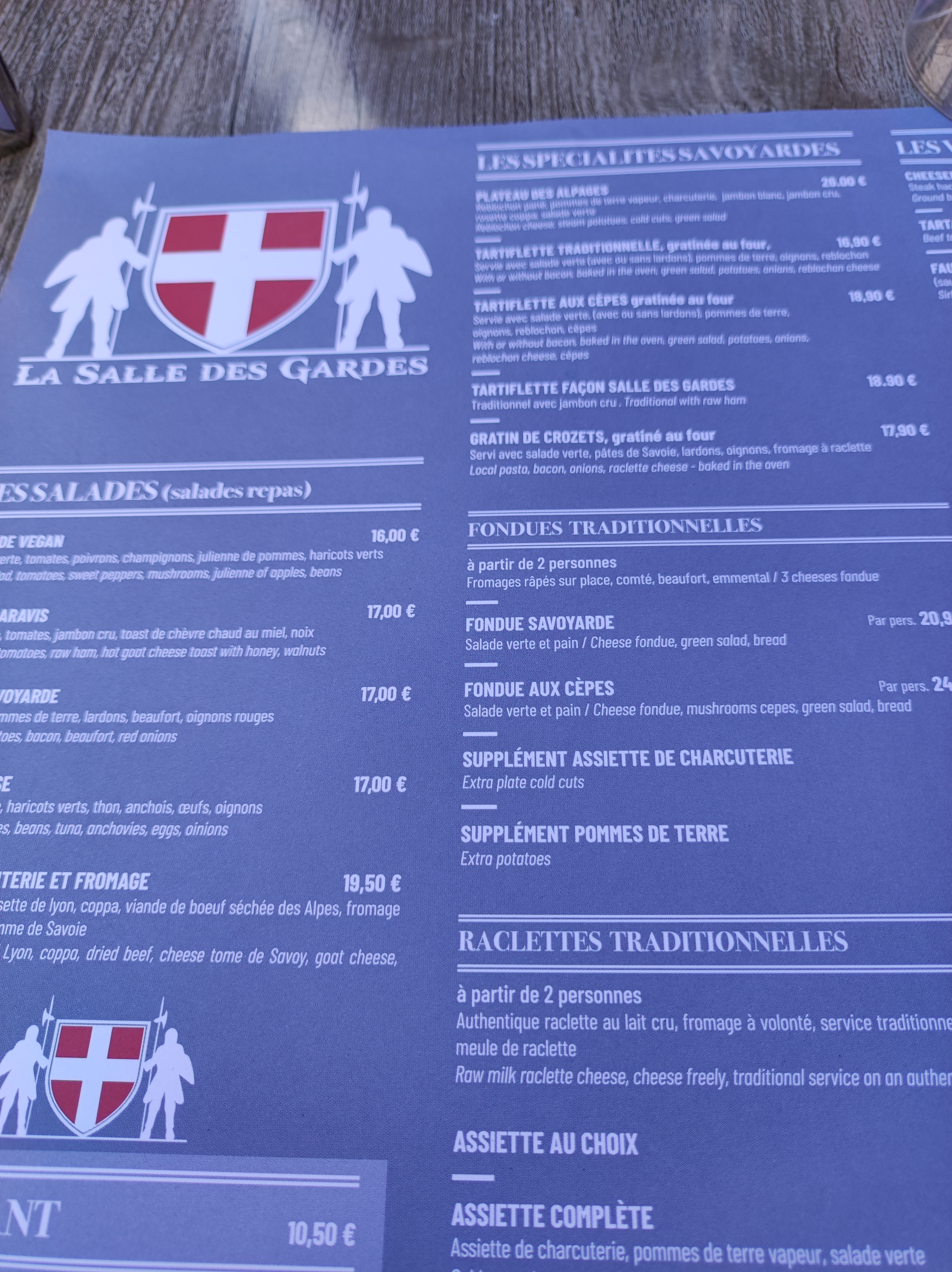 Qui dit restaurant, dit moment de partage et qui dit partage dit prendre son temps. Annecy le pays où il fait bon vivre, la salle des gardes nous a démontré tout son contraire..