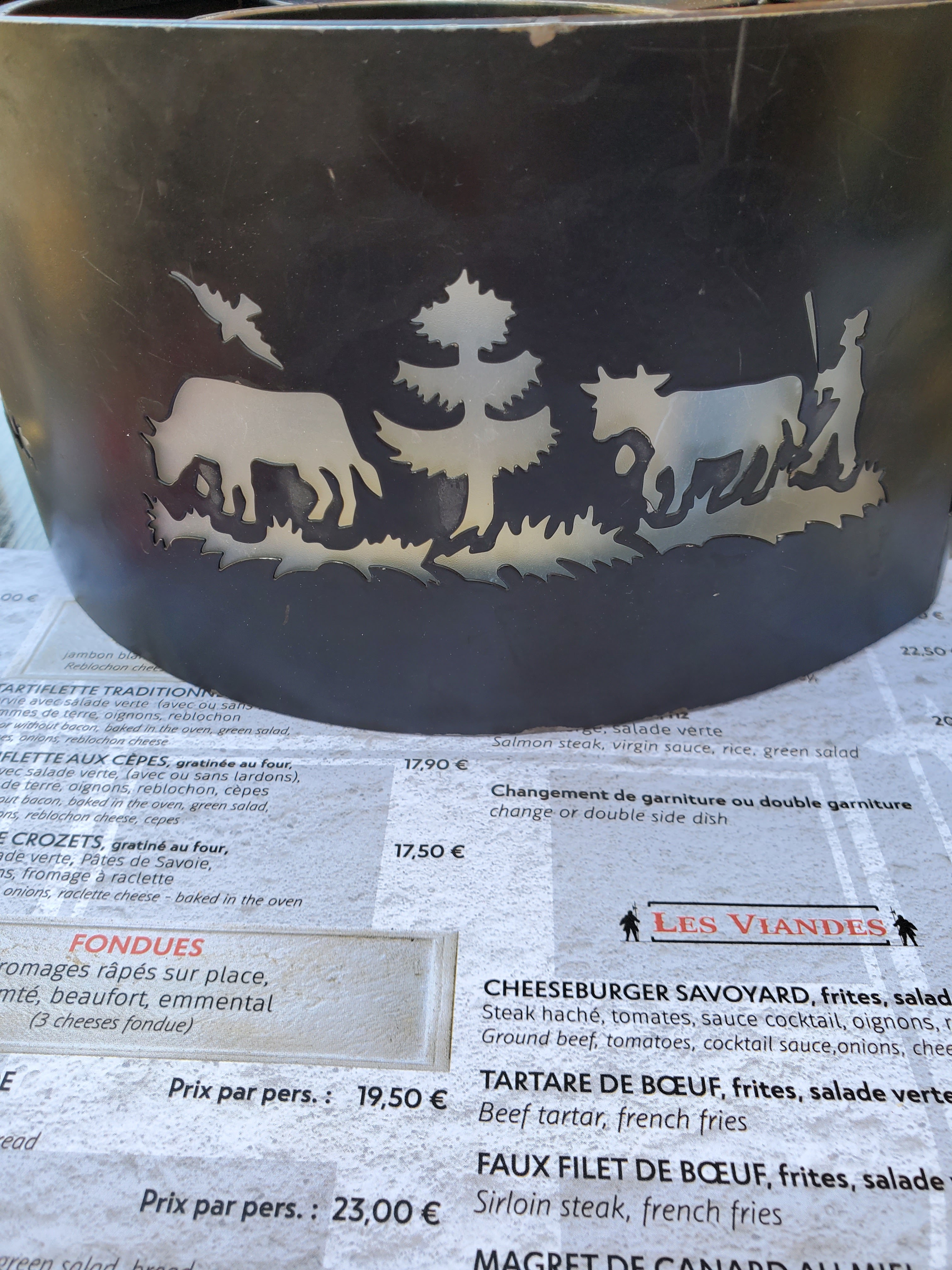 Peut être pas la meilleure fondue, surtout après beaucoup d'attente, mais des assiettes de charcuteries bien servies et surtout une terrasse très agréable en cette période de forte chaleur, un peu à l'écart de la foule touristique bien que très bien placée en bord du thiou.
