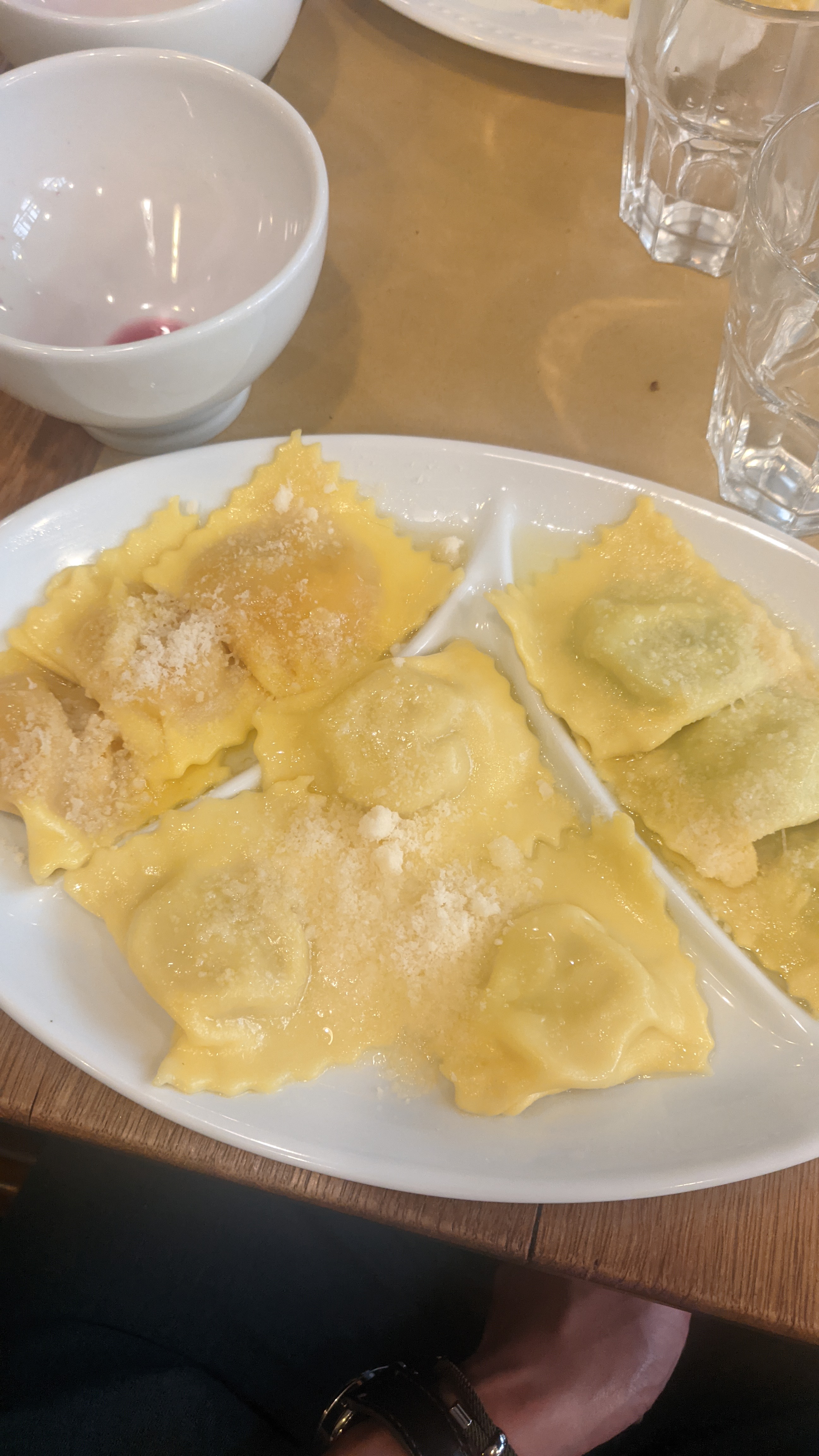 Venu sans réservation, pas le temps de goûter leur sorte de sauces que les plats sont déjà prêts, on avait pris une assiette avec les 3 sortes de ravioli qui n'étaient pas bon contrairement aux gnocchis au gorgonzola. Ensuite, il y a eu le dessert, le tiramisu était délicieux mais le sorte de sablé aux jaune d’œufs et aux amandes qui ressemblait plus à un cookie hyper sec et dur aux noix, amandes, cacahuètes avec un sabayon qui est tout sauf un vrai sabayon, la texture était bizarre, le goût pas bon. Résultat, je ne recommande pas ce restaurant et pour notre part, nous ne reviendrons pas