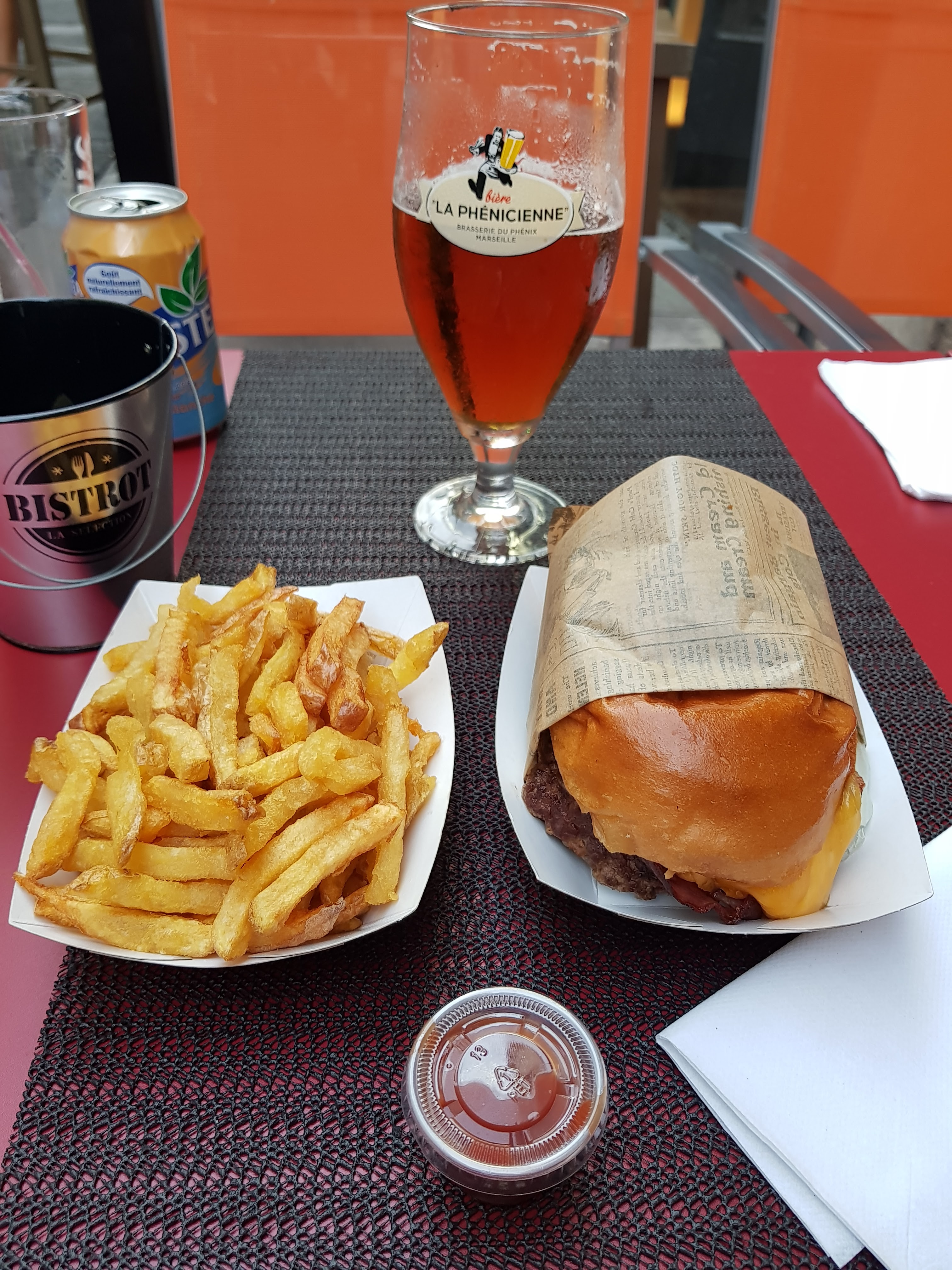L'adresse était depuis un moment dans ma liste de resto à goûter. Nous y sommes finalement allés avec 4 amis un mercredi soir de juillet. -> Niveau goût je suis plutôt satisfaite du cheese et bacon 🍔! Les frites sont bonnes mais la portion est trop petite 😬 !!! Petit bémol également pour les sauces à 0,50€! Notamment la ketchup cognac dont on ne sent pas vraiment le cognac... -> Niveau emplacement, malheureusement pas vraiment d'espace pour déjeuner sur place, heureusement ils ont un deal avec le bar d'en face: on peut utiliser leur terrasse à condition de commander à boire ;) Bon rapport qualité prix.